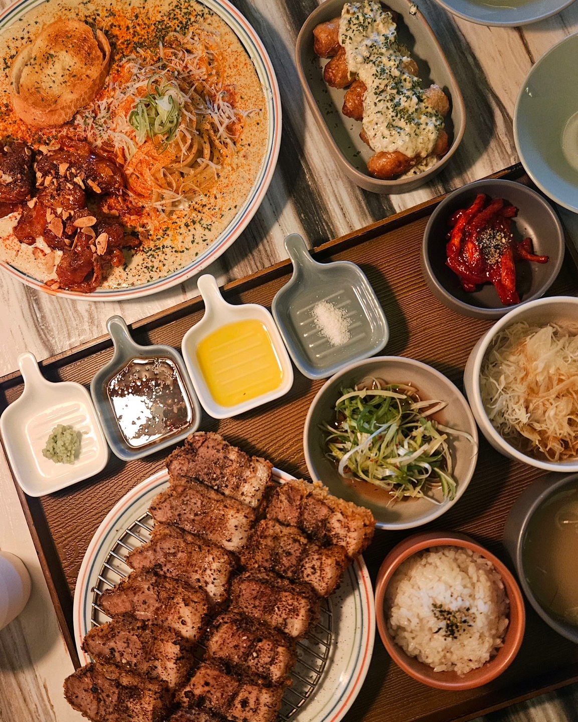 mangooojelly메뉴가 다양하고 정갈하고 깔끔하게 나와요. 음식이 맛있고, 직원분들도 친절하세요. 닭껍질만두도 특별하고 차슈껍데기 봄동미나리무침도 신선하고 맛있어용 매장 안 조명 분의기와 분리된 공간이 잘 되어 있어 데이트하기에도 좋은 식당입니다 :)