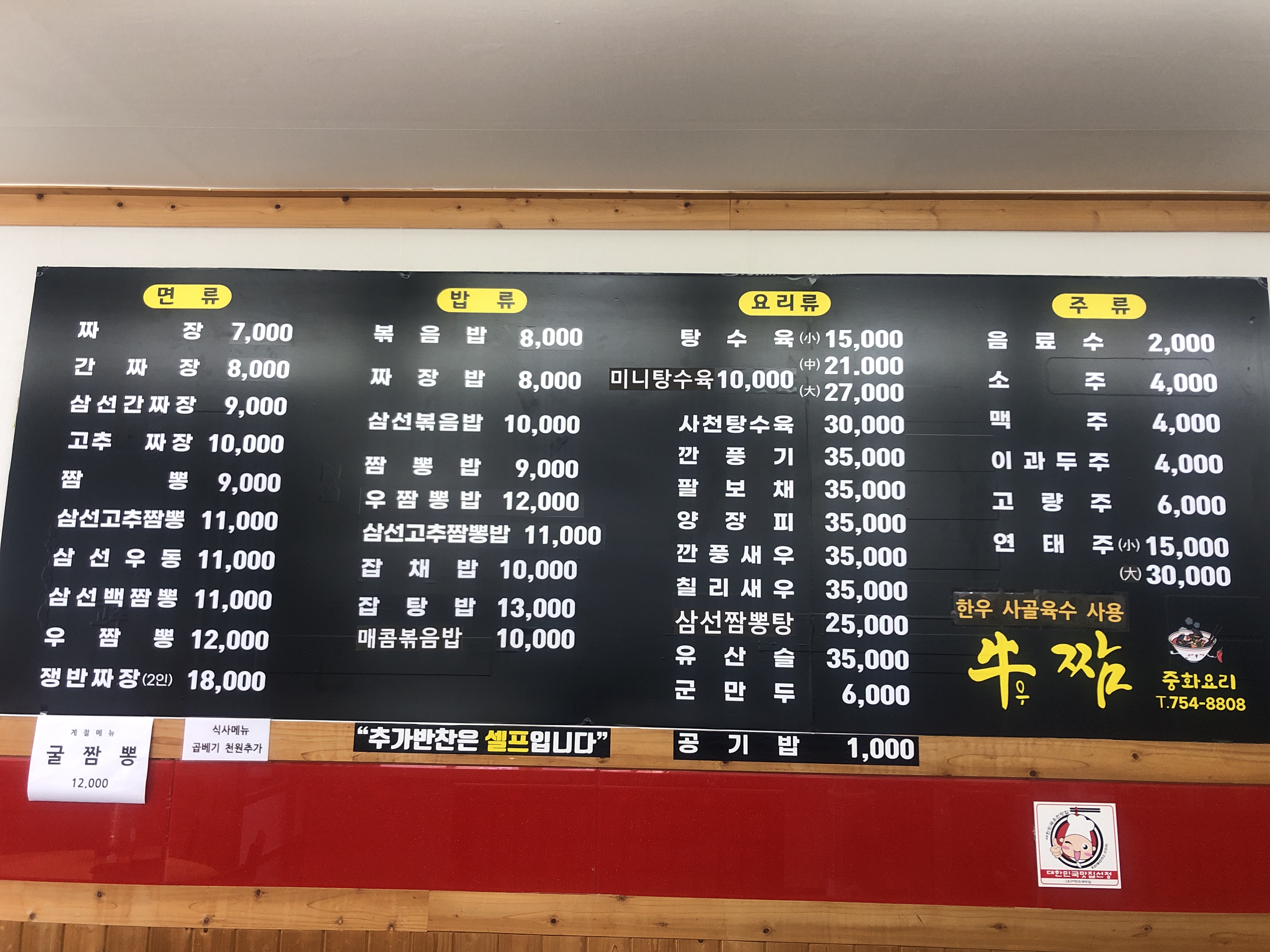 - 우짬뽕(소갈비살+삼선해물) 12,000원