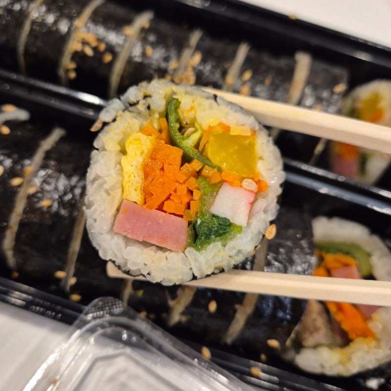 망고복숭아묵은지 김밥 최고에요 특히 떡볶이랑 잘어울려요! 가격도 저렴해서 굿👍