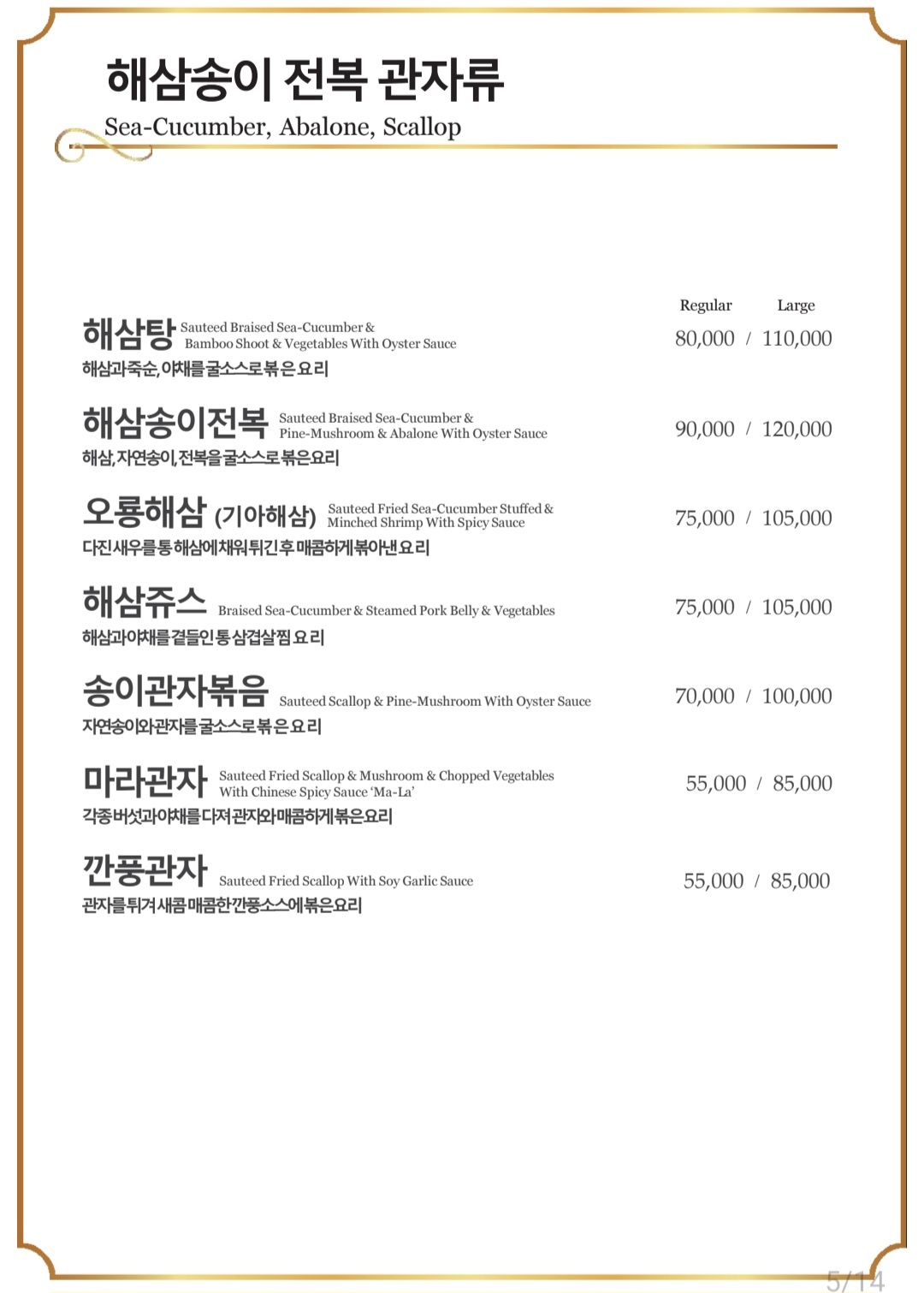 - 오품냉채 60,000원