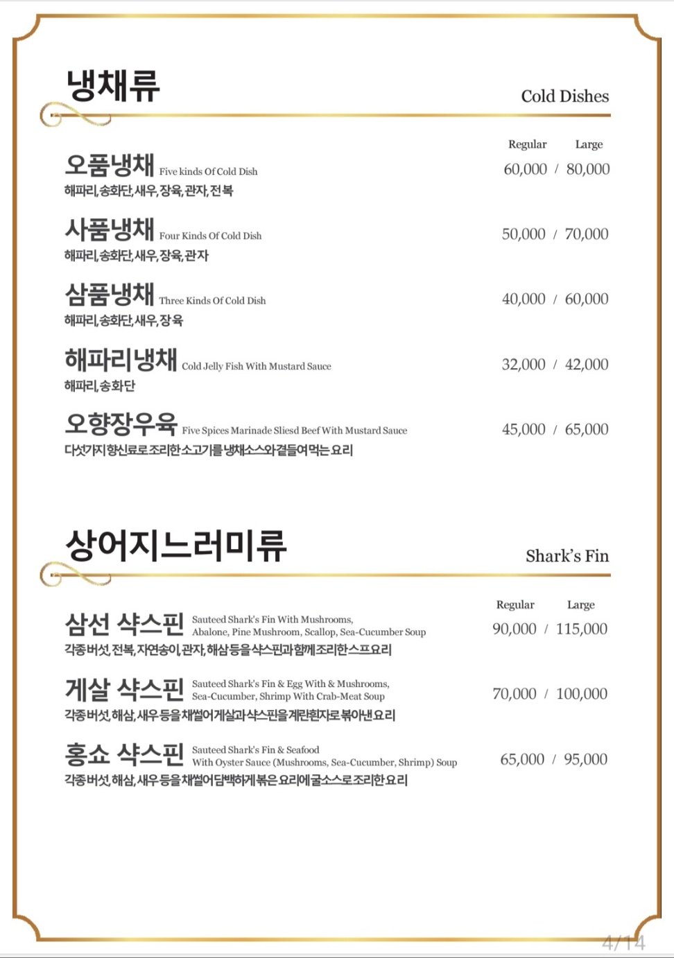 - 사품냉채 50,000원