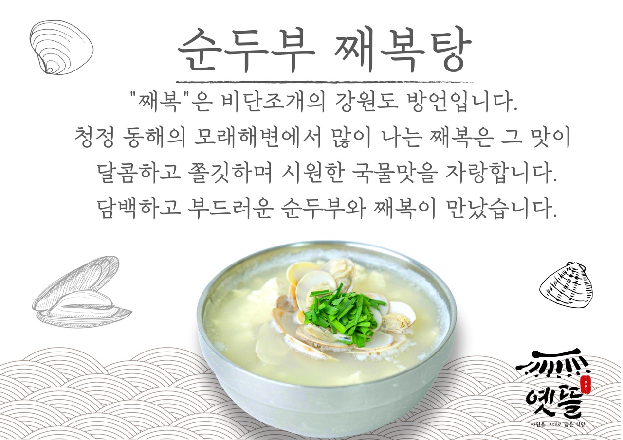 - 순두부 째복(비단조개)탕 13,000원