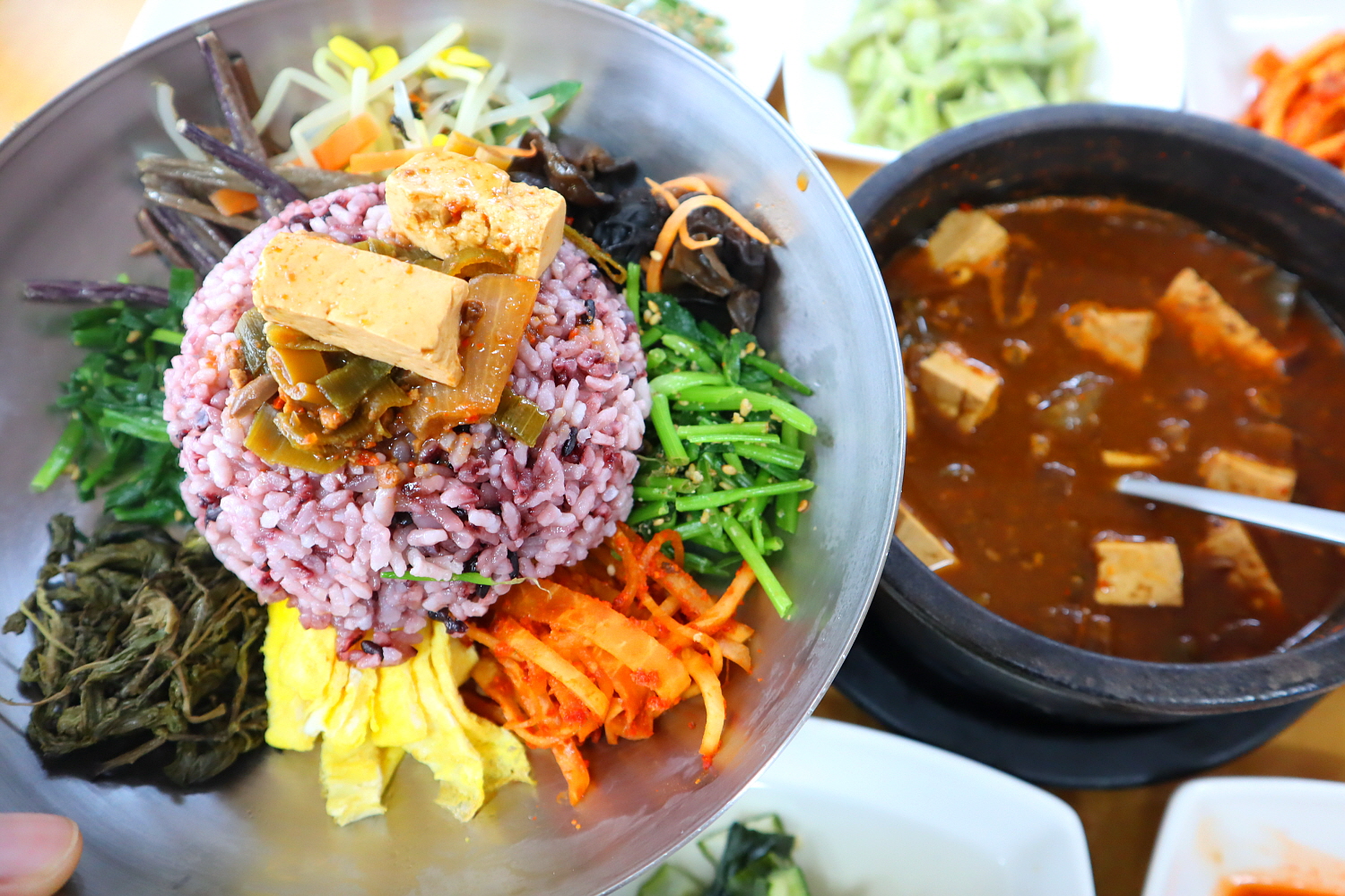 힙재이아침이라 소식하고 싶어 산채비빔밥만 시켰는데 반찬이며 된장찌개며 골고루 나와서 한 대접 뚝딱하고 반찬도 남김없이 다 먹고 왔네요. 평소에 인스턴트 음식에 찌든 도시인이었는데 건강한 밥상 맛있게 잘 먹고 갑니다. 먹으면서도 옆에 시원한 계곡 소리가 들려 좋았고 사장님 부부께서 인상도 좋으시고 친절하셔서 나올 때도 기분 좋은 식당이었습니다 항상 건강하세요👍