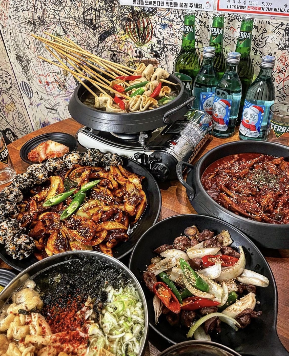 암사역 근처에 유명한 닭발집이 있다고 해서 바로 방문했는데요! 외관부터 포차 느낌 제대로 나서 분위기에 만족했는데 내부는 또 깔끔해서 좋았습니다. 테이블이 넓고 감성 가득한 낙서들도 있어서 분위기 즐기기 좋았어요!! 메뉴는 주먹밥이랑 석쇠닭발구이, 통통불오징어 먹었는데 가성비 완전 최고.. ❤️ 매콤한 거 좋아하시는 분들은 통통불오징어 무조건 추천해요! 오징어 귀신으로서 베스트에 드는 메뉴였습니다. 닭발은 그냥 말해뭐할까요.. 여기에서 닭발 안 시키면 손해인 거 알고 갑니다!!