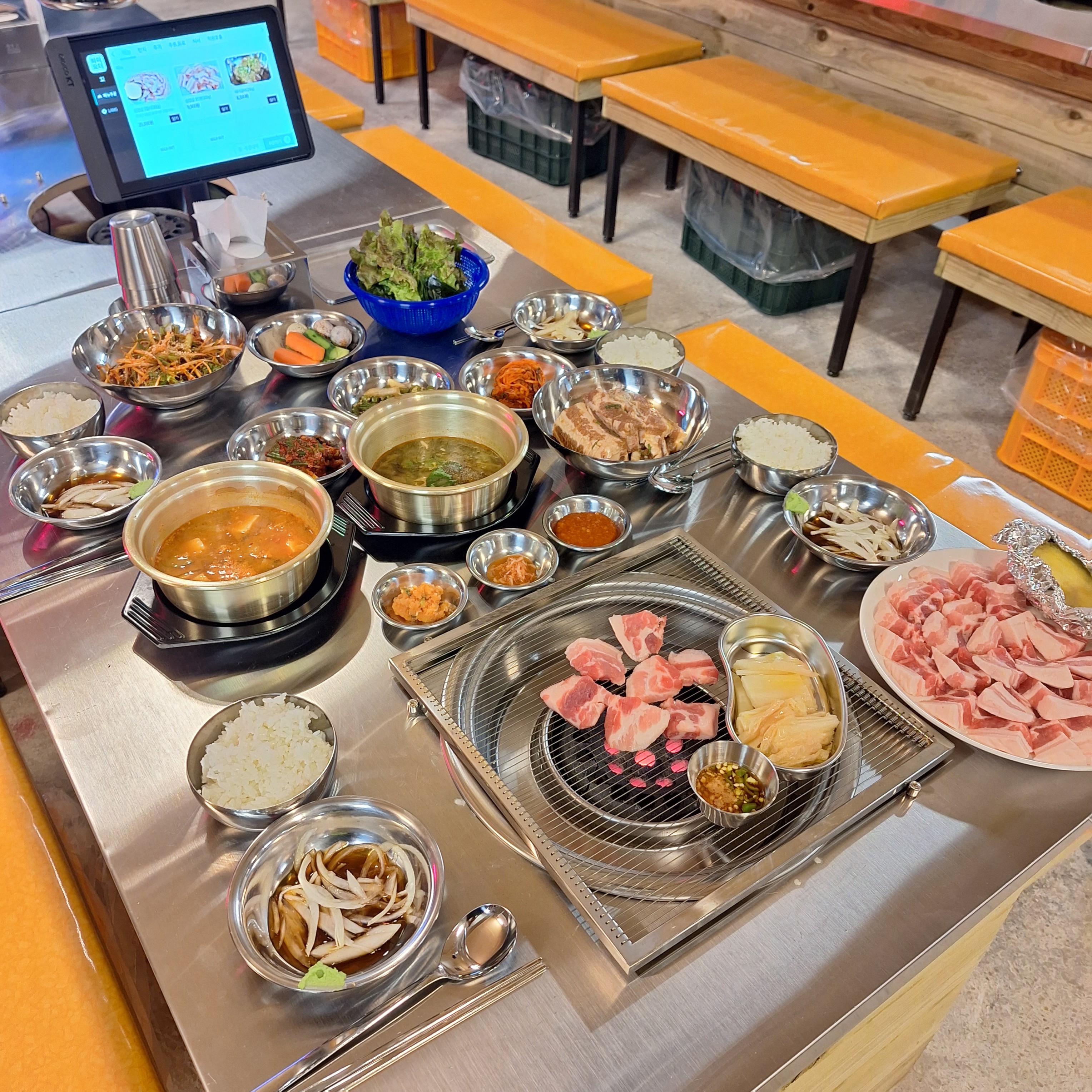 리닝57지니가며 보기만하다 리뷰가 좋아 첨 와봤는데 진짜 맛있네요 !! 하나 걸리면 한 곳만 파는데 여기도 이제 파게 될듯..♥ 연탄 훈연향이 미쳤고 삼겹,간장불고기,꼬리까지 다 맛있어요..♥ 된장에 밥 비벼 먹는 것도 킥 ! 부산식막걸리는 우유맛이 나네용 여자분들이 좋아하실듯 계란찜도 밑반찬도 다~~ 맛있습니다🥰