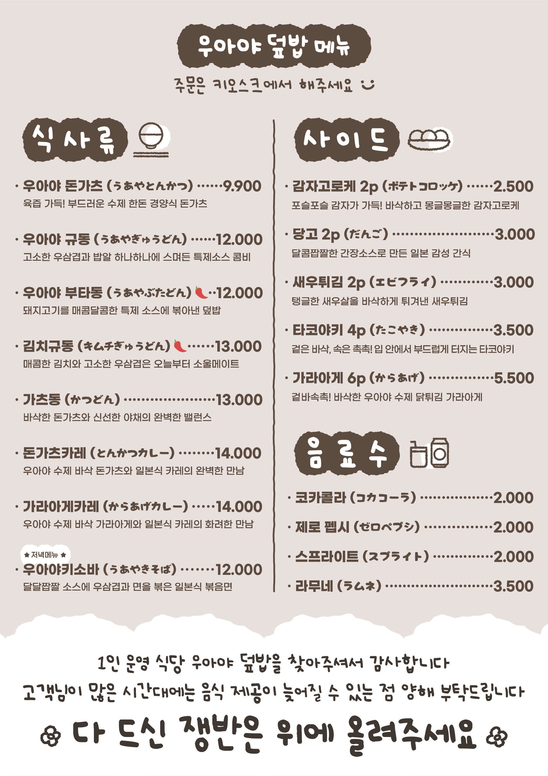 - 우아야 규동 12,000원