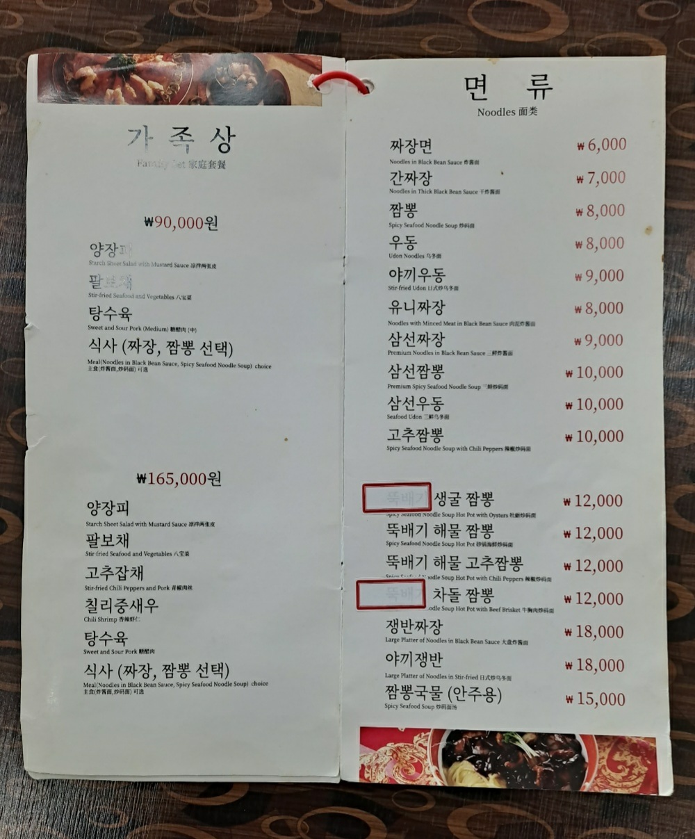 짜장면 2그릇, 탕수육 (소), 소고기 탕수육 (대)를 주문하여 총 8만원을 지출했다. 식당에 도착했을 때는 손님없이 여종업원 혼자 있었다. 탕수육과 짜장을 시킨 후, 단무지를 추가로 가지러 가려고 하니, 탕수육 덩어리 하나가 단무지통 옆에 놓여 있었다. 방금 갓 튀긴, 따뜻한 탕수육 이었다. 물증은 없지만, 필시 여종업원이 내가 주문한 탕수육에서 하나를 덜어내 놓고, 나에게 음식을 가져다 준 것 같았다. 시발, 이따위로 손님을 응대하다니... 집에 포장해 간 탕수육은 소고기라고 믿고 싶지만, 도대체 어느 부위인지 궁금할 정도로 질겨 5만원이 아까을 정도였다. 여종업원의 상식이하의 버릇없는 소행과 맛없지만 비싼 소고기 탕수육으로 인해 망친 하루였다. 짜장 외에는 사 먹지 말기를 바란다.