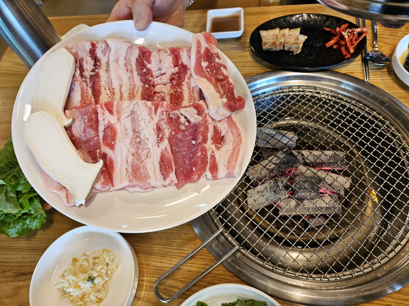 꿍따리샤바라꿍치따치고기가 두껍고 질도 좋고 맛있습니다. 밑반찬도 너무 맛있어요. 양념게장이 비리지도 않고 맛있어서 리필도 해먹었어요 히히히힣 직원분도 친절하시고 다같이 맛있고 기분좋게 식사했습니다.