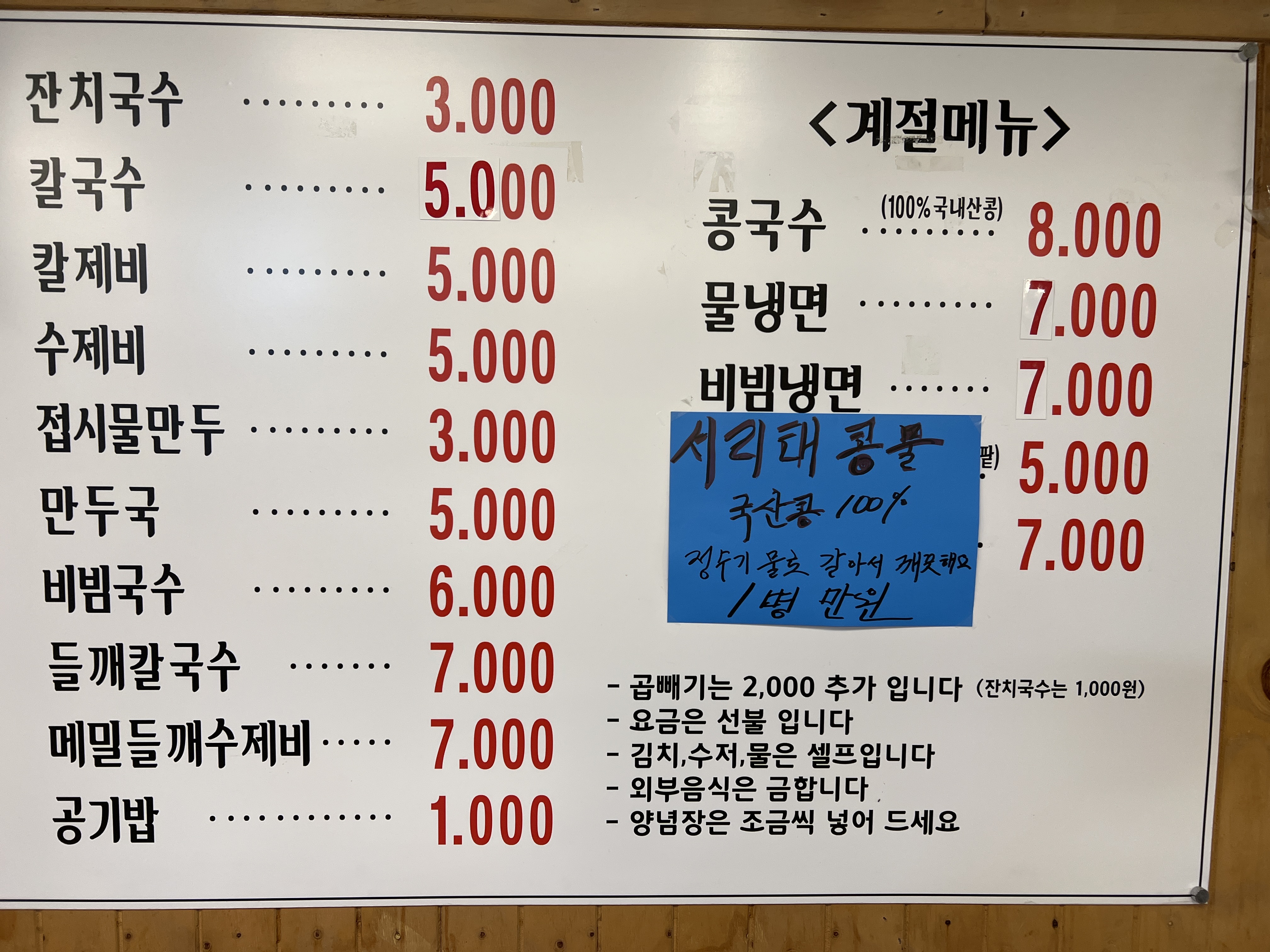 - 칼국수 5,000원