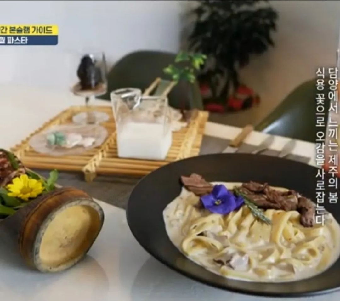 완전빠다코코낫담양 방문하면서 밥집 찾아보다가 예쁜 양식집 발견해서 방문했어요! 특별한 메뉴도 많고, 다 맛있어보여서 고민 많이하다가 ✔️ 통 오징어 먹물 리소토 ✔️ 살치누룽지파스타(기본매콤) 주문했습니다! 식전 수프와 빵조각을 주는데, 뜨끈하니 맛있었습니다☺️ 그리고 파스타는 크림파스타인데 맨 아래 누룽지가 깔려있어서 살짝 긁어서 크림에 불려서 먹는 재미가 있더라구요👍 그리고 살치살 부드럽고 맛있었어요ㅜㅜ🫰🏻 통 오징어 먹물리소토는 통오징어가 들어가있는데 비릿한 맛 전혀없고! 질기지도 않았어요! 그리고 리소토가 크리미한 맛일 줄 알았는데 짭쪼롬한 맛이여서 물리지도 않았습니다✨ 매장 곳곳에 생화 + 인테리어소품이 있는데 너무 예쁘더라구요 (사장님 감다살) *재방문의사있어요 🚙 주차는 근처 주민센터 주차장에 했습니다