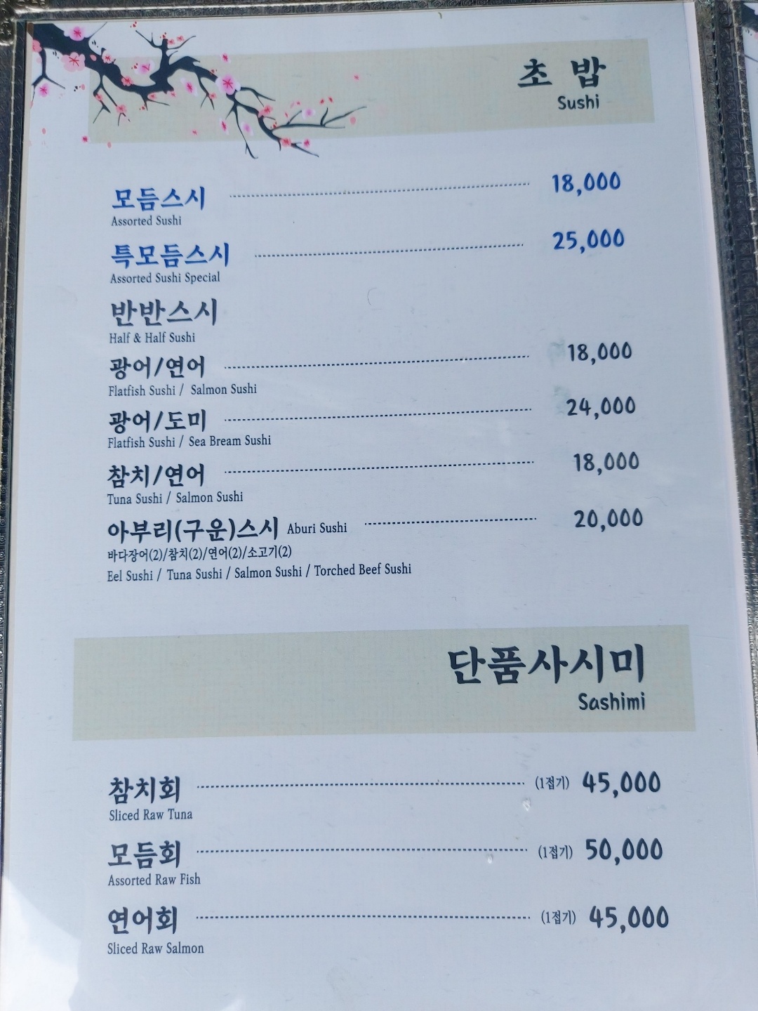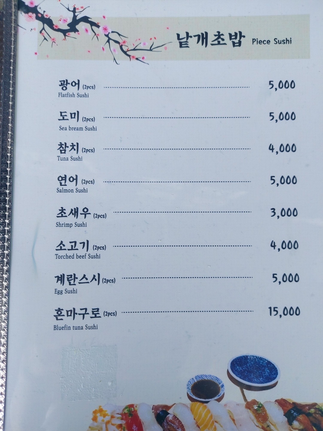 - 스시 코스 80,000원