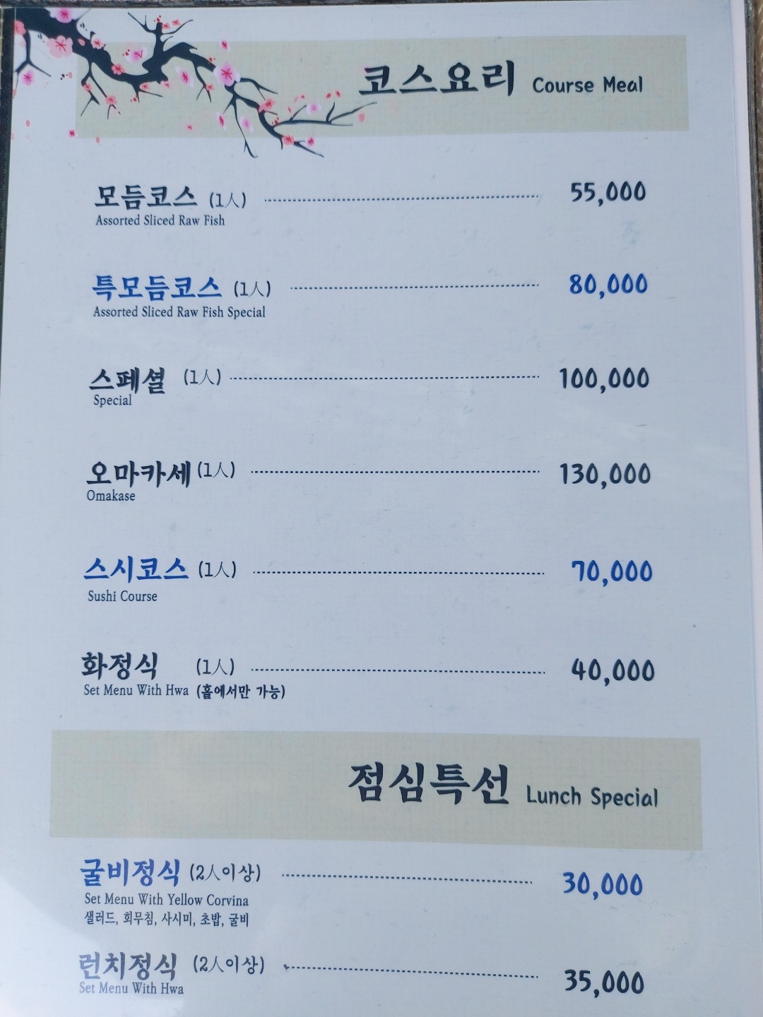 - 스페셜 일식코스 110,000원