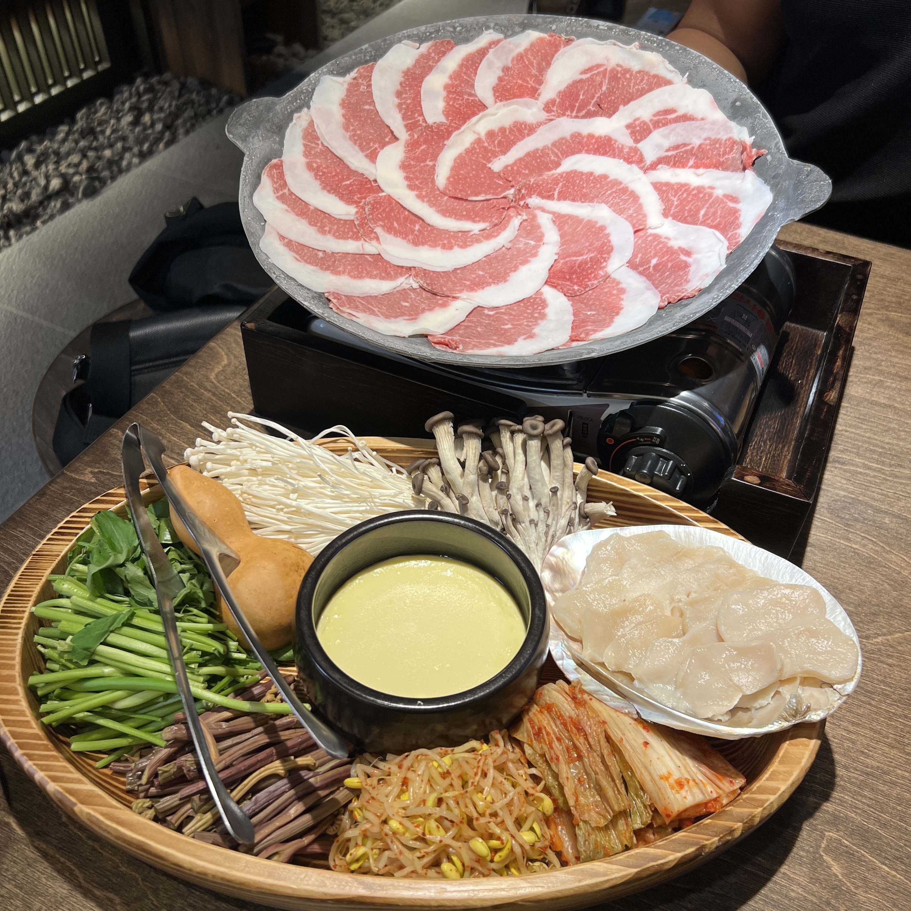- 우삼겹 전골 + 솥밥 한상 23,000원