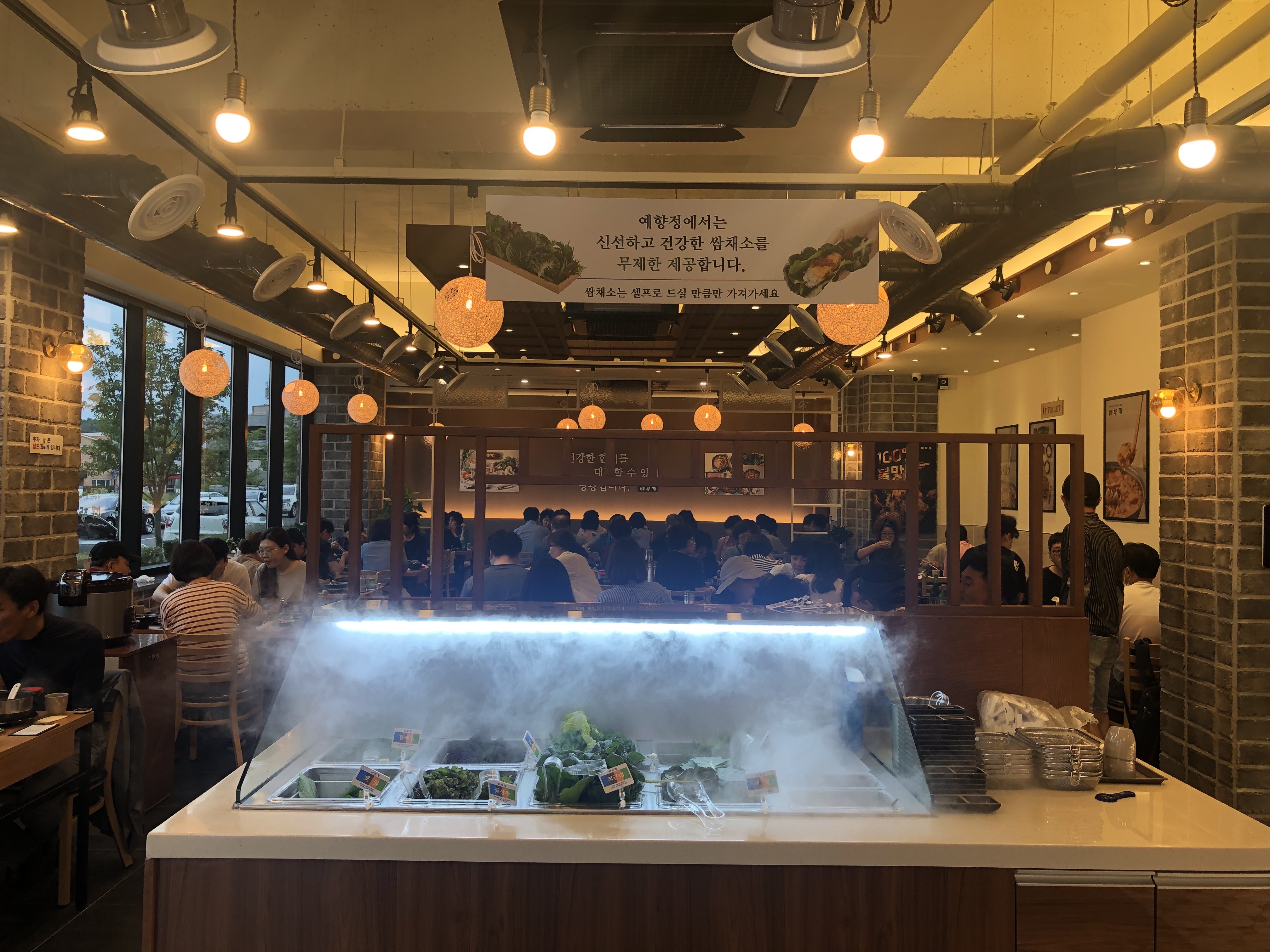 그러니깐 그래세트메뉴로 된장 또는 김치찌개, 두루치기를 먹을 수 있어요. 갓 한 밥이 밥통째 테이블에 나와요. 그래서 밥맛이 좋아요. 쌈채소 종류도 다양하고 신선한데 셀프바에서 자유롭게 가져가서 먹을 수 있어요. 김치찌개 칼칼하고 고기 많이 들어있고요. 직화두루치기는 고추장 양념의 매콤한 맛이라서 쌈 싸먹기 좋아요. 주차도 편하고 가격도 만족해요.