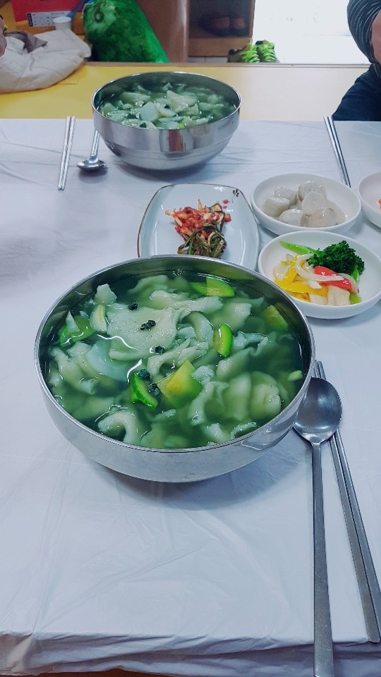 임영숙646순창1박2일 남편이랑 여행을 갔다가 2일차아침 비가오고 바람이 불고 날씨가쌀쌀했다. 남편이랑 아침밥을 먹으려고, 식당을 찿다가 갑자기 눈에 들어온 달슬기탕,수제비를 발견하고, 들어간 집. 따뜻한 둥굴레차 한잔을 마시며,다슬기탕을 기다리고 있으니, 깔끔하고, 신선한 반찬이 나오고, 다슬기탕이 나왔다. 2인분을 시켜야 했다. 남편은 다슬기탕이 먹고싶다하고, 나는 수제비가 먹고 싶었는데, 그냥 남편이 먹고 싶은것으로 2그릇을 시켜서 맛있다며, 오이반찬은 상큼해서 "여보 나도 집에가면 이렇게 무쳐줄까?" 도란도란 이야기 나누며 먹고 있을때, 수제비 한그릇을 가져다 주셨다. 그때, 시키지도 않았는데, 수제비를 가져다 주시네. 나중에 계산할때 계산하면되지 그러면서 맛이게 나눠먹었는데, 남편의 계산서는 다슬기2그릇.