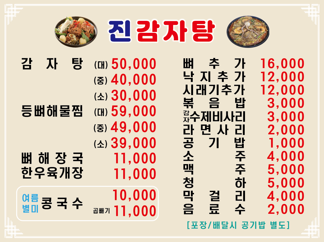 - 감자탕(대) 50,000원