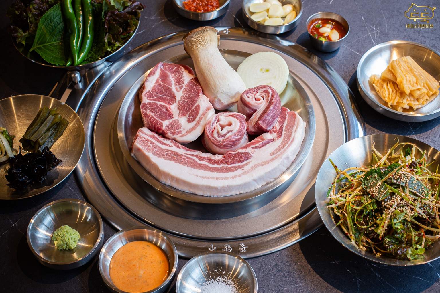 EVA님부산 화명동에 위치한 돼지고기 맛집, 두둑 ✨️ 한번 맛보면 잊을 수 없는 고소한 맛이 일품인 돼지구이 집인데요! 일단 고기 자체가 정말 신선하고 맛있어서 다른 반찬 없이도 너무 맛있었어요~ 그리고 사장님과 직원분들이 다 구워주시니까 편하게 먹기만 하면 된답니다 ㅎㅎ 기본적으로 된장찌개가 제공이 되어서 다른 찌개는 주문하지 않아도 괜찮았어요! 사장님 센스 👏 저희는 두둑 모둠1과 계란찜을 주문했는데 생각보다 양이 많아서 놀랐어요 👍 아기랑 함께 방문했는데 다 먹고나니 엄청 배부르더라구요~ 아기용 그릇도 챙겨주시고 아기가 먹을 수 있게 잘게 잘라주셔서 감동! 😊 기본 반찬들도 굉장히 깔끔하게 나와서 고기와 참 잘 어울렸어요.👏 화명동 근처 오시면 꼭 한번 들러보세요. 강력 추천💓