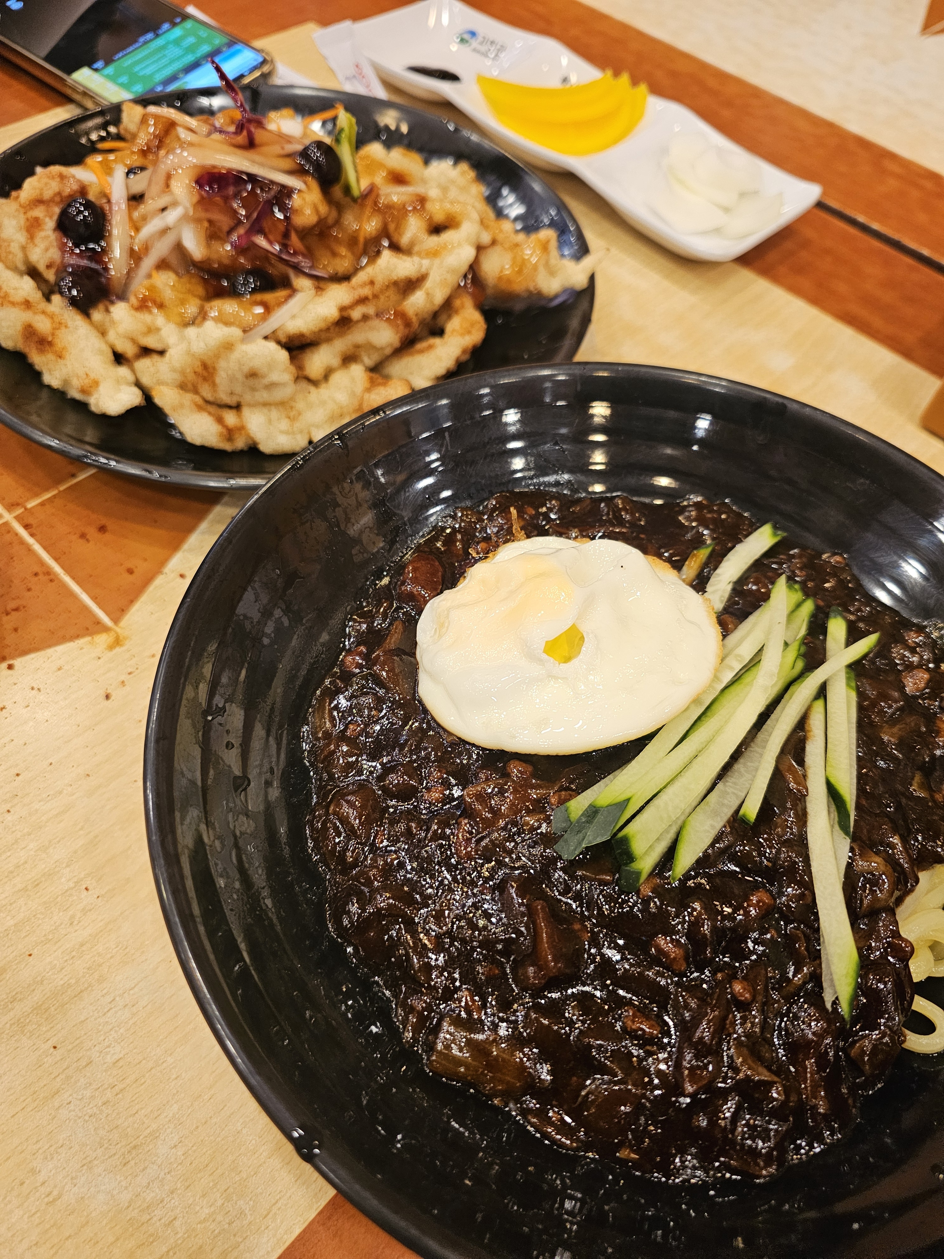 원스대디고령에선 제일 최근에 생긴 중국집인데 주차는 가게 앞에 해도 되는데 1시간지나면 단속된다고 하네요 짜장면 탕수육 짬뽕 주문했는데 탕수육 먼저 나오고 짜장면나오고 짬뽐이 시간차를 두고 나와서 한면은 좀 기다려야했어요 탕수육은 보토이고 짜장면과 짬뽕에 들어간 면이 직접 뽑아서 만든게 아닌 시판 중화면아거 같아요 휴게소에서 판매하는 짜장면의 면같고 맛도 좀 비슷한데 좀더 깊은맛 생각보단 나쁘진 않은데 아!! 하는 맛은 아니네요 짬뽕도 불향은 나는데 그냥 평범해요 제가 어릴때 부모님이 중국집을 하셔서 다른 사람들과는 맛을 느끼는게 다를순 있지만 평범하네요