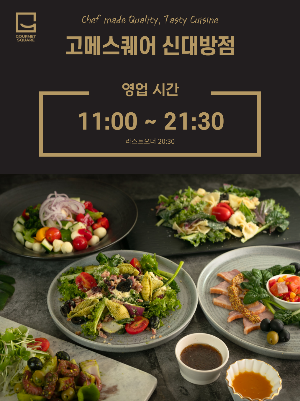 양상추추가족모임으로 백만년만에 뷔페에 갔어요 (개인적으로 뷔페 별로 안좋아함 😂) 고메스퀘어는 다른 초밥뷔페보다 초밥퀄이 그나마 괜찮고 특히 디저트류 구성이 빵빵해서 갈만 합니다 여러번의 방문으로 터득한 (엄빠집 근처라서 은근 자주 갔는데 영수증리뷰를 매번하진 않았어요) 베스트 구성을 추천드리자면 연어초밥 광어초밥 위주로 한접시~ 한치물회 지라시스시 장어지라시스시로 한접시~ 그릭샐러드 해초샐러드등 샐러드류로 한접시~ 소금빵(여기 빵중엔 소금빵이 베스트) 과일 아이스크림으로 한접시~ 일케 4접시는 꼭 드세요!!! 그다음은 개취에 따라 핫푸드 분식 롤 등으로 더 드시면 되요 음식이 특별히 맛있진 않지만 다양하게 먹을수 있다는 게 최대장점이구요 모임으로 하기엔 좌석도 많고 넓어서 역시 좋네요^^*