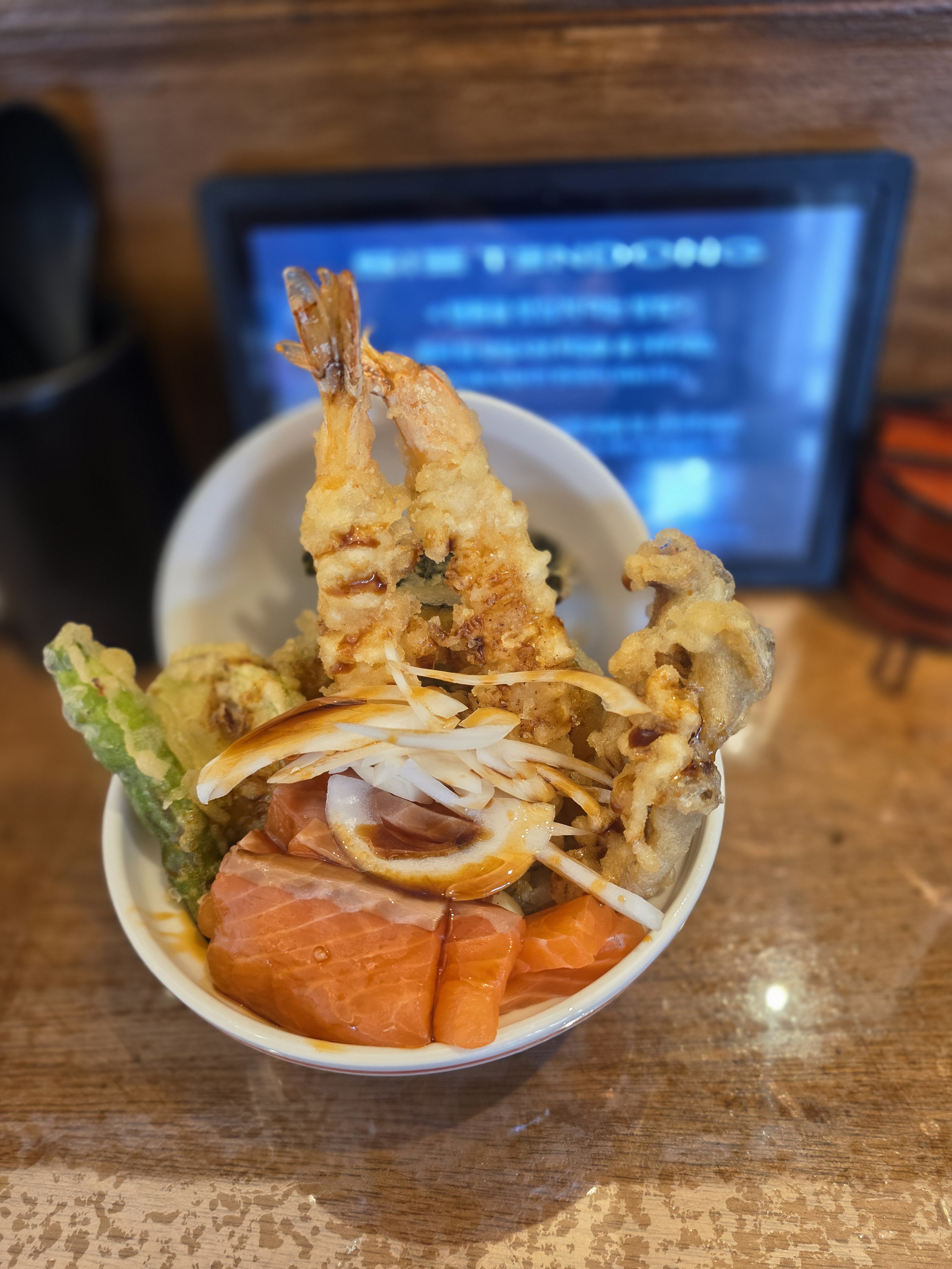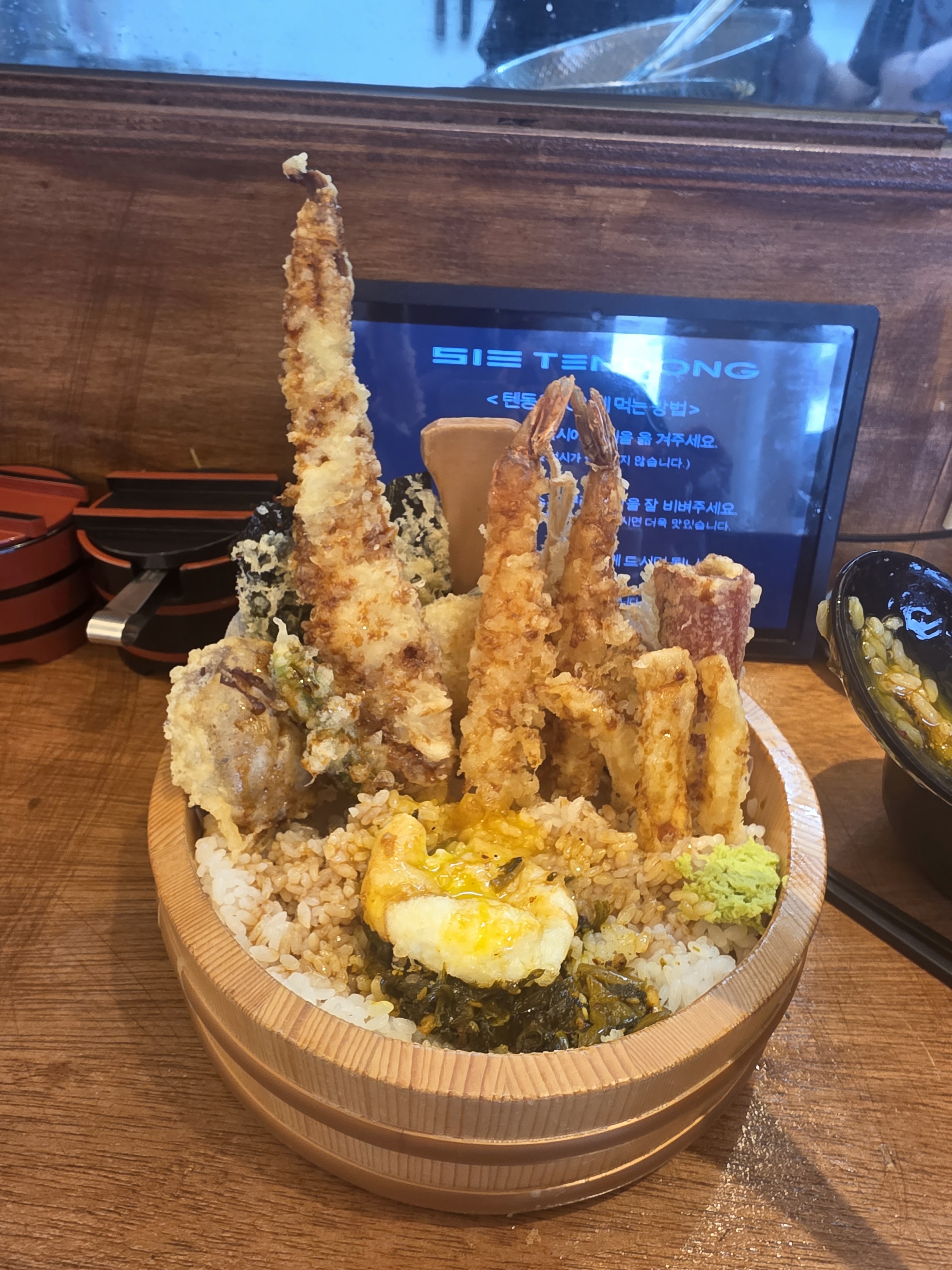 Allfree7오픈런. 곧바로 만석. 기다릴 뻔... 스페셜 텐동으로 주문. 바로 튀겨 나와 정말 뜨거웠고, 튀김은 끝까지 바삭바삭. 구성도 다양해서 좋았고, 밥과 비벼 먹은 소스 아주 굿!