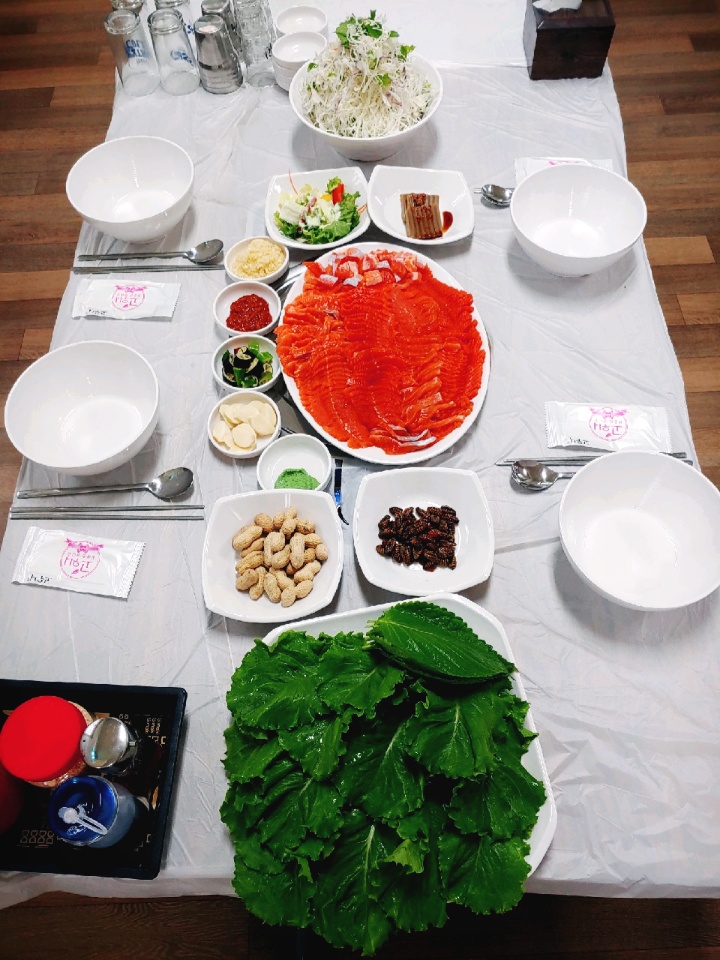 보은 대추축제 갔다가 근처에 있어서 송어회 포장했습니다~ 3키로 포장했는데 다른 곳보다 금액이 저렴해서 좋았어요! 다만 무게를 재보진 않았지만 양이 살짝 적은 것 같기는 합니다😂 같이 비벼먹을 야채랑 쌈채소, 양념장, 다진마늘, 콩가루 같이 주셨습니다. 빼 먹은 건지 참기름은 따로 안 줘서 집에 있는 걸로 넣어 먹었습니다~ 양념장이 매콤달달한 양념이라 너무 맛있어요💕 특히 송어가 진짜 신선하고 퀄리티가 좋아서 맛있었습니다! 뱃살 부위도 주셨는데 엄청 고소해서 연어 먹는 줄 알았어요~ 흙 맛 같은 것도 하나도 안 나고 가시도 거의 안 나와서 좋아요👍 참고로 매운탕은 4천원이에요! 원래도 송어비빔회 좋아하는데 지금까지 먹어본 곳 중에 손에 꼽을 정도로 회 퀄리티가 좋아서 양은 살짝 아쉽지만 추천합니다💖