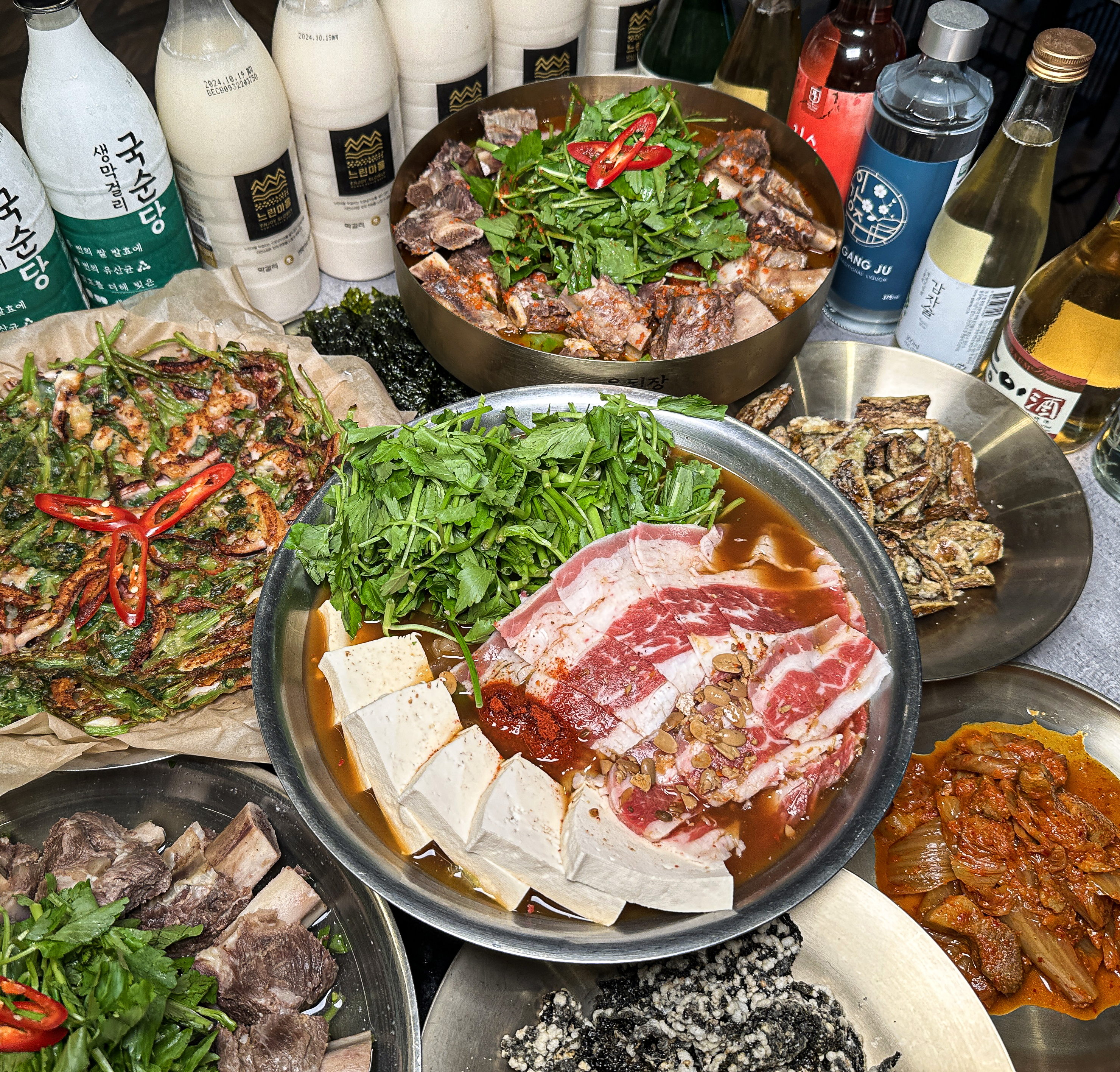 양프림수육전골을 좋아해서 옥된장 정말 가보고 싶었는데요. 완~~~전 대만족 하고 왔습니다👍 2인세트로 모듬수육전골+오징어 미나리전+수육무침 먹었는데 이게 39,000원... 갓성비 미쳐버렸죠! 양도 2인이 먹으면 배터지는 양이더라구요?! 일찍 열어서 낮술하기도 좋고 테이블에 기본으로 있는 김도 맛있었어요. 재방문 의사 10000000%👍