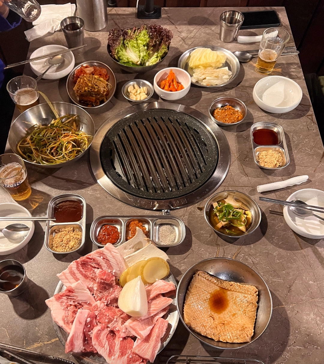 박리즈주말 초저녁에 방문했는데 벌써 거의 만석이고 나올 때는 웨이팅까지 있었어요. 주변에 고깃집이 많은데도 이 집만 줄 서 있는 이유가 있네요. 참숯에 구워서 그런지 고기 향이 정말 고소하고, 숙성 한돈이라 육즙이 풍부하고 식감이 부드러웠어요. 수제돼지갈비 양념도 과하지 않아 계속 손이 갔고, 돼지김치찌개랑 얼큰땡초라면도 맛있어서 식사까지 완벽했습니다. 반찬도 하나하나 다 맛있고 매장도 깔끔해서 재방문 의사 있어요!