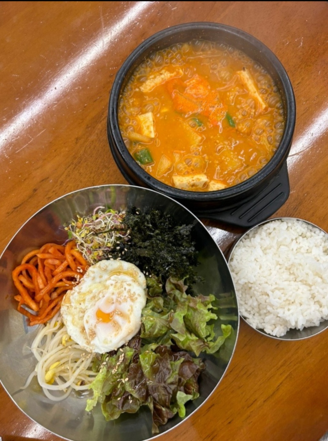 같은하늘아래우리투가리 혼밥하기 좋구 음식 맛있어요 오늘은 순두부 찌개로.. 반찬 밥 리필 가능하구요 조미김이나 계란 후라이 등은 따로 추가 계산 합니다 그래도 아주 저렴하고요 오늘 잘먹구 갑니다