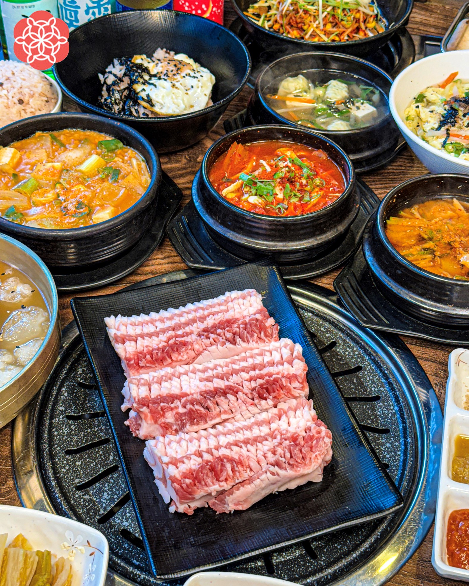 웅성웅성일단 고기가 두툼하게 나와서 비주얼부터 먹음직스러웠고, 불판 위에서 구우면 지방이 적당히 녹으면서 육즙이 살아있는 느낌이었습니다. 특히 꽃삼겹 특유의 칼집 덕분에 겉은 바삭하고 속은 촉촉하게 익어서 식감이 정말 좋았습니다. 고기 굽는 것도 초벌로나와서 편하게 먹을 수 있었고, 불 조절도 잘 해주셔서 고기가 타지 않고 맛있게 익었습니다. 기본 반찬들도 깔끔하게 나오는데 특히 쌈채소랑 같이 먹으니 느끼하지 않고 계속 들어가더라고요. 개인적으로는 소금에 찍어 먹었을 때 고기 본연의 맛이 가장 잘 느껴졌고, 김치랑 같이 구워 먹으면 또 다른 맛이라 조합이 좋았습니다. 매장 분위기도 깔끔하고 점심부터 늦은 시간까지 운영해서 저녁에 술 한잔하면서 먹기에도 괜찮은 곳이었습니다.