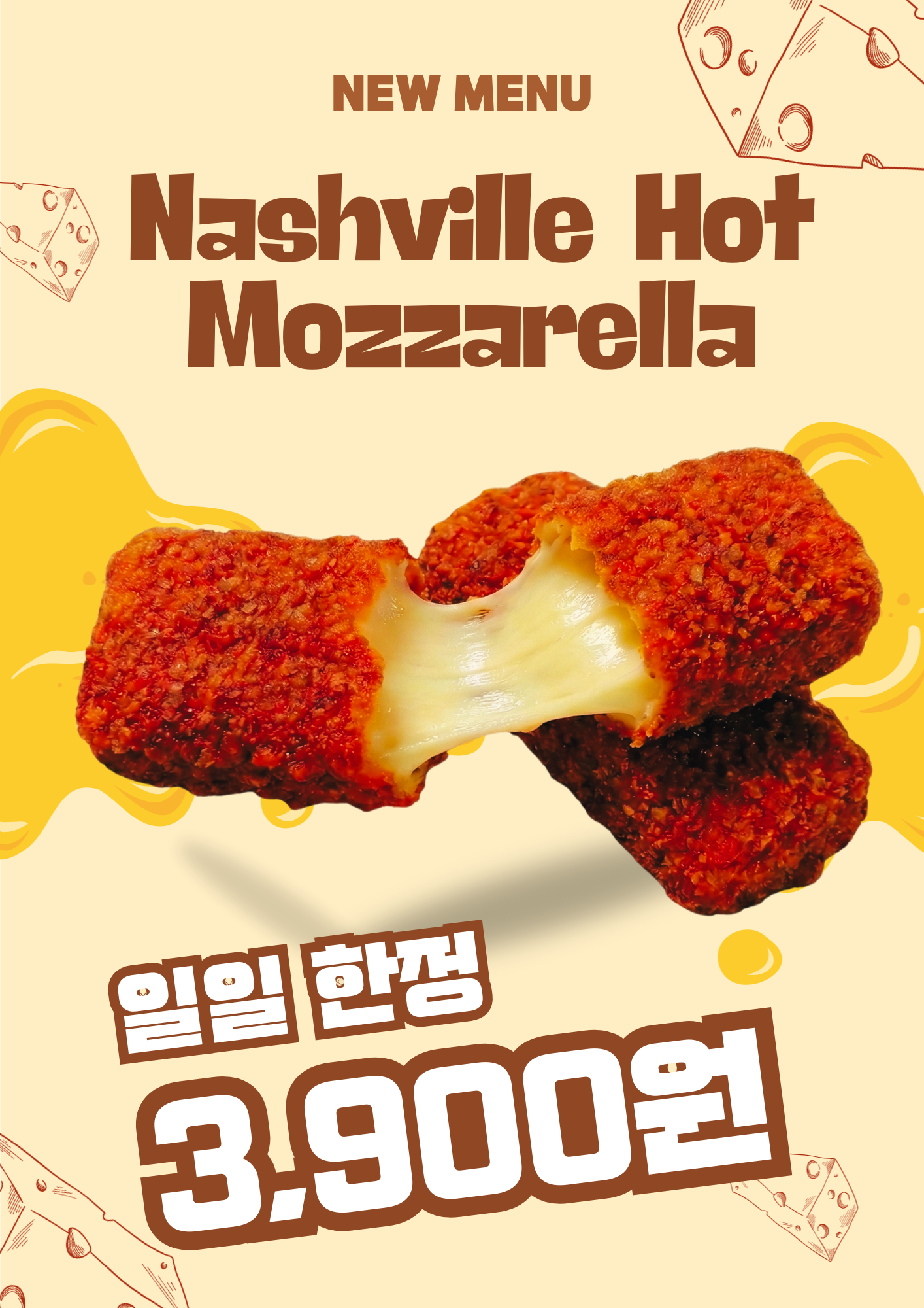 - 통 모짜렐라 내슈빌 치즈스틱 3,900원
