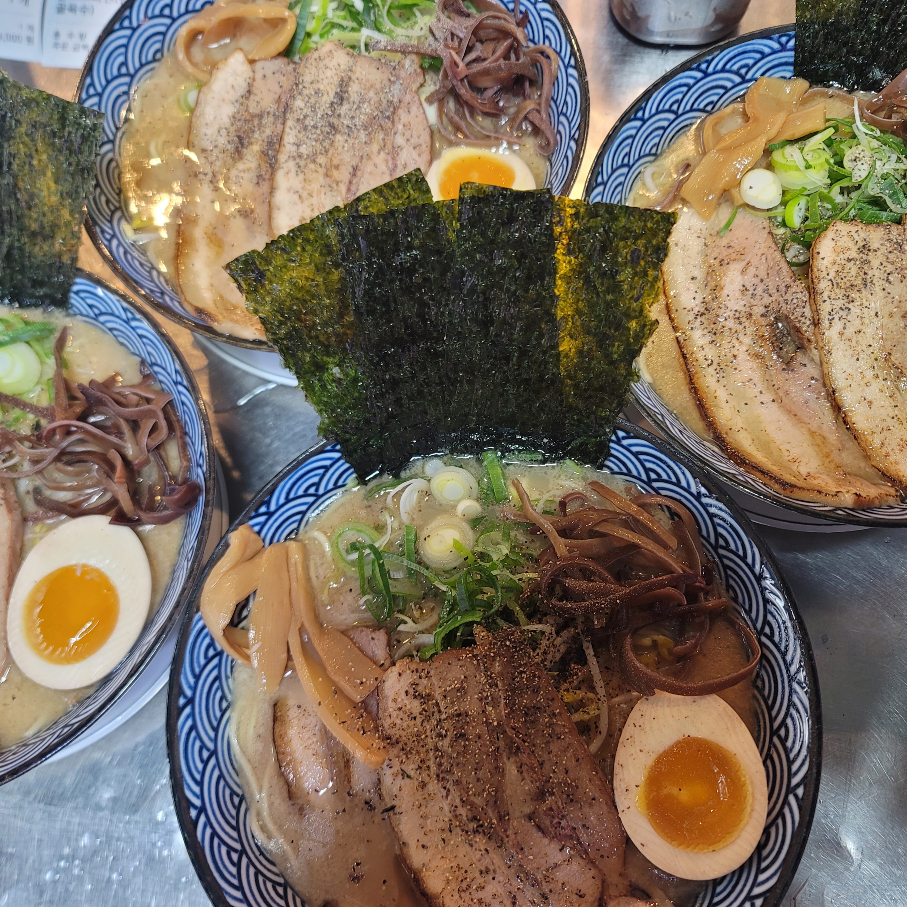 팽e님오랜만에 라멘~~~ 몇번 방문했는데 재료소진으로 못먹어서 너무 아쉬웠는데 오늘은 먹을수 있어서 너무 좋았어요~ 여기 라멘 맛은 언제나 배신하지 않는다는 너~~무 맛있어요~ 야끼교자도 겉은 바삭바삭 속은 육즙이 쭈욱~~ 맛있어요