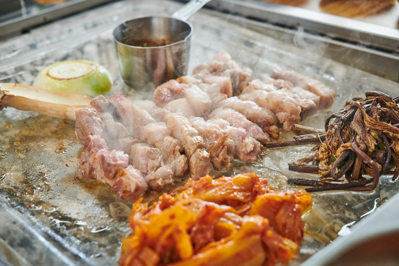 요니이친구들이랑 제주도 여행와서 급정한 음식점이었는데 다들 피곤했는데 다 구워주셔서 좋았어요 수정불판도 특이하고 고기 질도 너무 좋고 맛있어요! 고기먹는 팁도 알려주시고 너무 친절합니다 밑반찬도 하나같이 다 잘어울리고 너무 잘먹고 갑니다👍🏻
