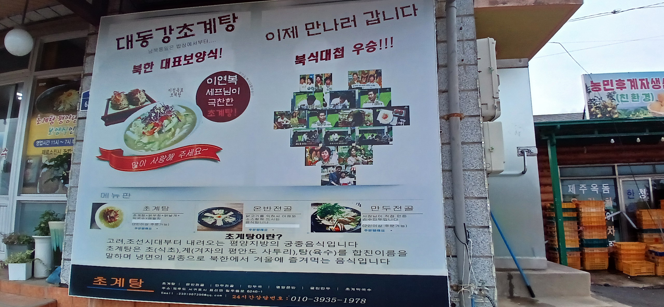 강쥐52초계탕 뿐만아니라 같이 나오늣 음식이 하나같이 다 맛있습니다. 양도 푸짐해요. 직접 빚으셨다는 만두도 육즙 팡팡입니다. 만두가 생각보다 커서 남으면 포장해야지 했는데 먹다보니 다 먹었어요. 사장님 부부 친절하시고 음식 솜씨도 좋으시네요. 다른 음식 맛도 궁금해서 다음에 제주도 방문 하면 냉면도 먹고 옹심이 칼국수도 먹어 보려고 합니다. 아침에 숙소에서 너무 일찍 나와 다른 곳 가려다 초계탕 맛이 궁금해서 근처에서 시간때우다 갔는데 정말 잘 갔다는 생각이 들정도 었어요. 번창하세요~~내년에 제주도 가면 꼭 방문할께요 !!!