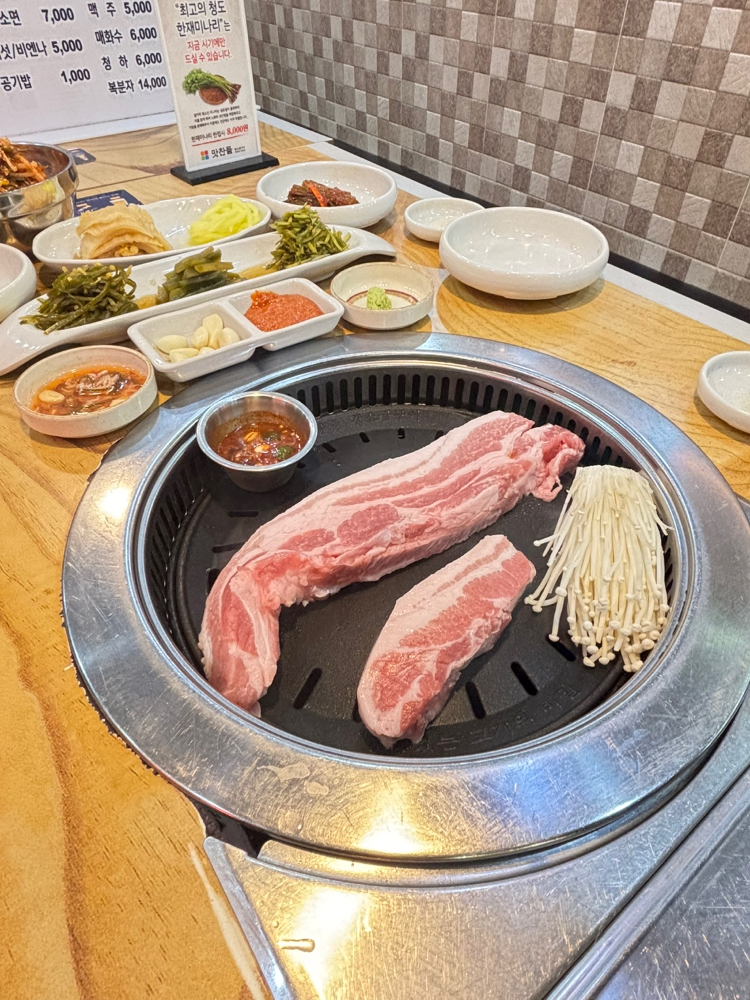 - 숙성생삼겹살 15,000원