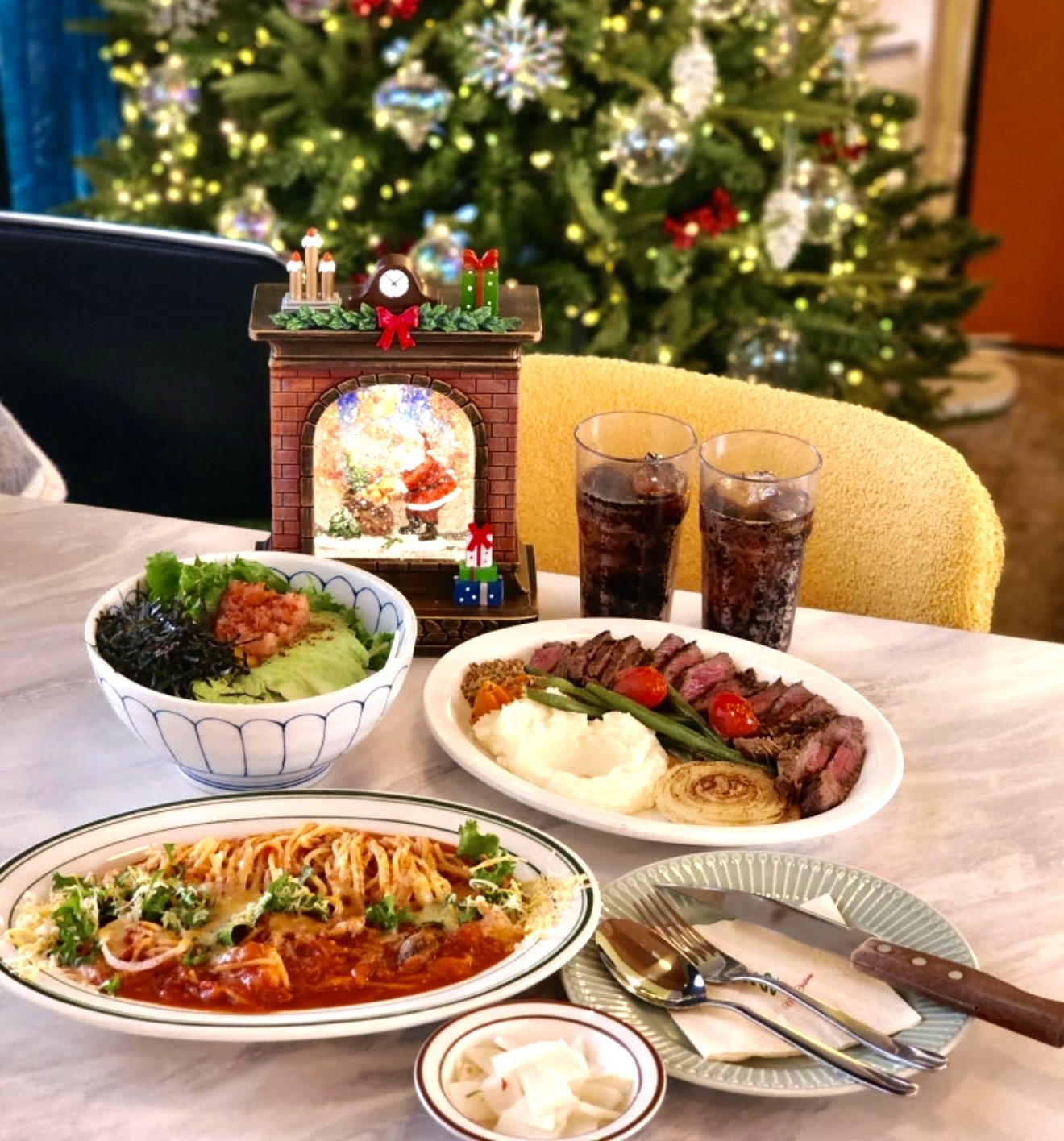 어랍show🏡가정집에 온듯한 편안하고 아늑한 분위기에🎄크리스마스 트리가 연말분위기 갬성을 자극하고 🖼작은 전시관에 온듯 다양한 작품 인테리어가 인상적이었어요🤠 🥩살치살스테이크는 🏆오붓식당의 1순위 베스트메뉴로 🏵플레이팅과 비주얼부터가 🌋침샘폭발을 자극하고 👄한입 먹기좋은 크기에 겉바속촉하니 🎊육즙이 팡팡 터지는게 넘 환상적이었고, 🥔감자무스와 구운채소, 당근라페, 홀그레인 머스타드까지 곁들여 먹으니 👍정말 완벽한 맛이었고, 🍷와인과의 페어링도 넘 좋을것같아요🎐 🍝매운크림 등심파스타는 🌶크러쉬드 레드페퍼를 곁들인 매운크림소스 베이스에 부드러운 파스타면과 🥓쫄깃한 등심의 조합이 매콤하면서 💢중독성이 강한 독보적인 매력을 주는 메뉴여서 소스까지 순삭했다는😋