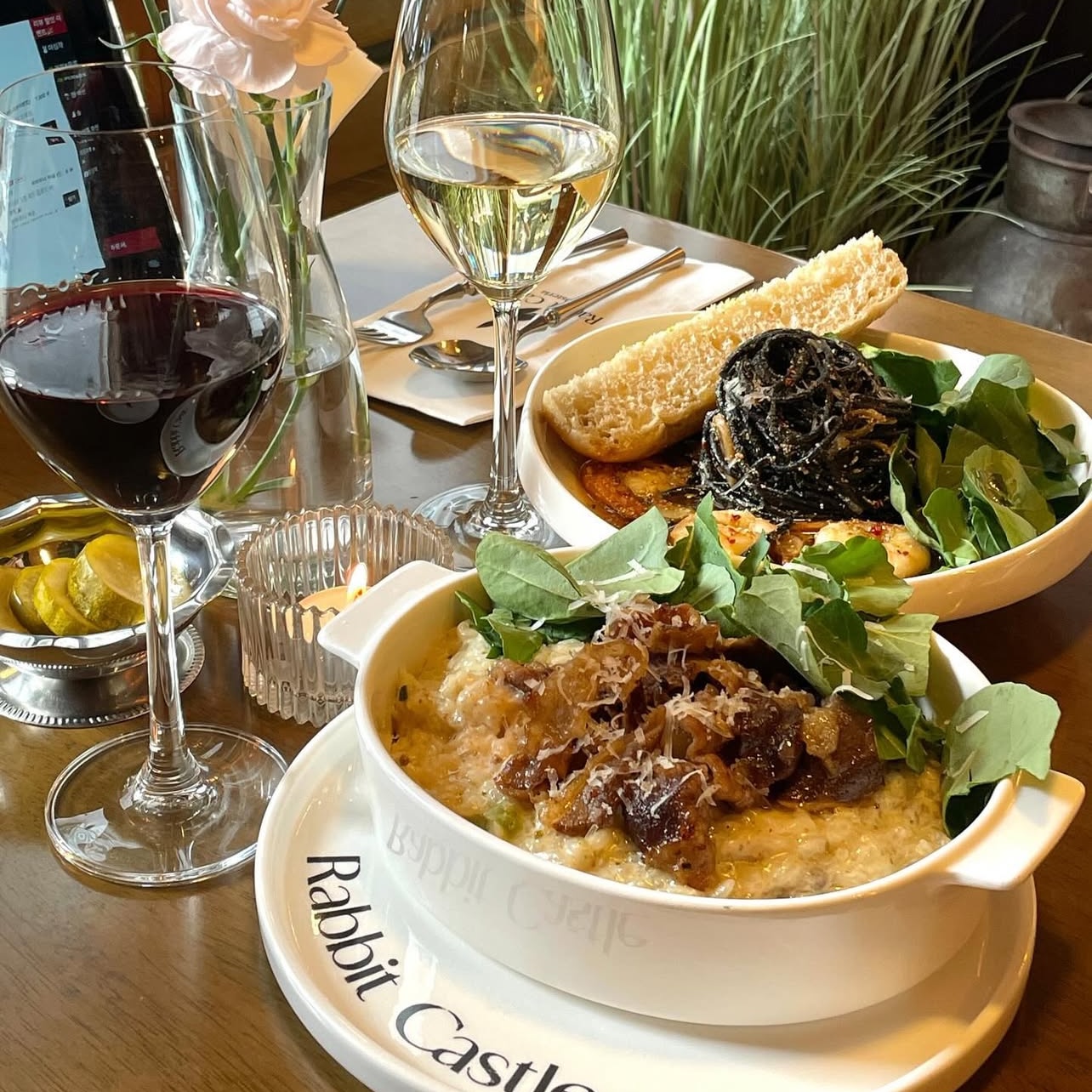 KDY17인테리어가 아기자기하게 잘 되어있어서 너무 귀여워요! 곳곳에 숨겨진 토끼들을 찾는 재미가 쏠쏠하답니다 :) 저희가 주문한 메뉴는 라따뚜이 뇨끼, 명란 먹물 스파게티, 시칠리아 풍 해산물 리조또 였어요~ 뇨끼에 들어간 채소도 큼직하고,저는 원래 가지를 선호하지 않는데 오늘 먹은 뇨끼에 있는 가지는 너무너무 맛있게 먹었어요! 뇨끼 반죽도 쫀득쫀득해서 궁합이 딱이었어요! 리조또는 해산물 내장이 많이 들어갔는지 녹진한 맛이라 더욱 좋았습니다 👍🏻👍🏻