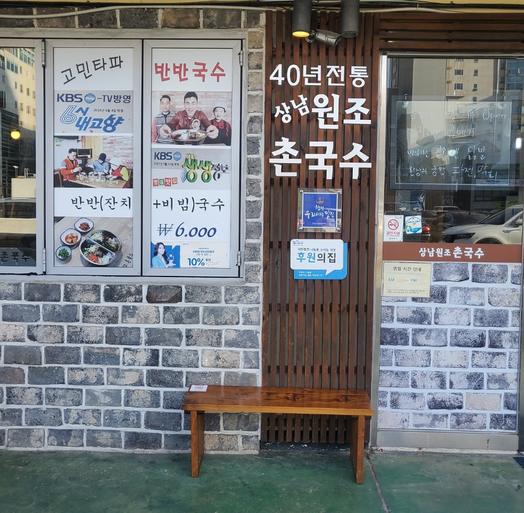 A True Life창원에 볼일이 있어서 호다닥 갔다가 더워서 입맛도 없고 해서 국수 한그릇 호다닥 먹으러 들렀습니다. 창원 상남시장 상남원조촌국수 경남 창원시 성산구 마디미로 28 상남재래시장 C-309호 영업시간 매일 10시30~밤 8시30 브레이크 오후3시30~4시30 라스트오더 밤8시 공휴일 장날 일요일은 브레이크없음 상남동 상남시장 3층에 뙇!있구요 여기 주위로 국수집이 많음. 둘다 먹고 싶어서 반반 주문요~ 내부 후딱 점심때 혼밥 할려는 분들이 많은 듯. 셀프로 차량등록도 가능합니다. 너무 좋앙! 기본찬인데 단무지 하나도 그냥 나오지 않는다. 반반 셋뜨! 장점 1인 혼밥가능 빨리 나오구여. 이집은 원래 땡초지지미가 맛있습니다만 점심때 지지미먹으면 막걸리 먹어야 되서 패스. 상남시장자체가 온누리 제로페이가능. 한그릇을 먹어도 주차등록해줌. 단점 맛이 썩 그리 아주 막 맛있어서 생각나서 못참겠다 그런맛은 아임. 면이 쫌 뿔어나왓음.