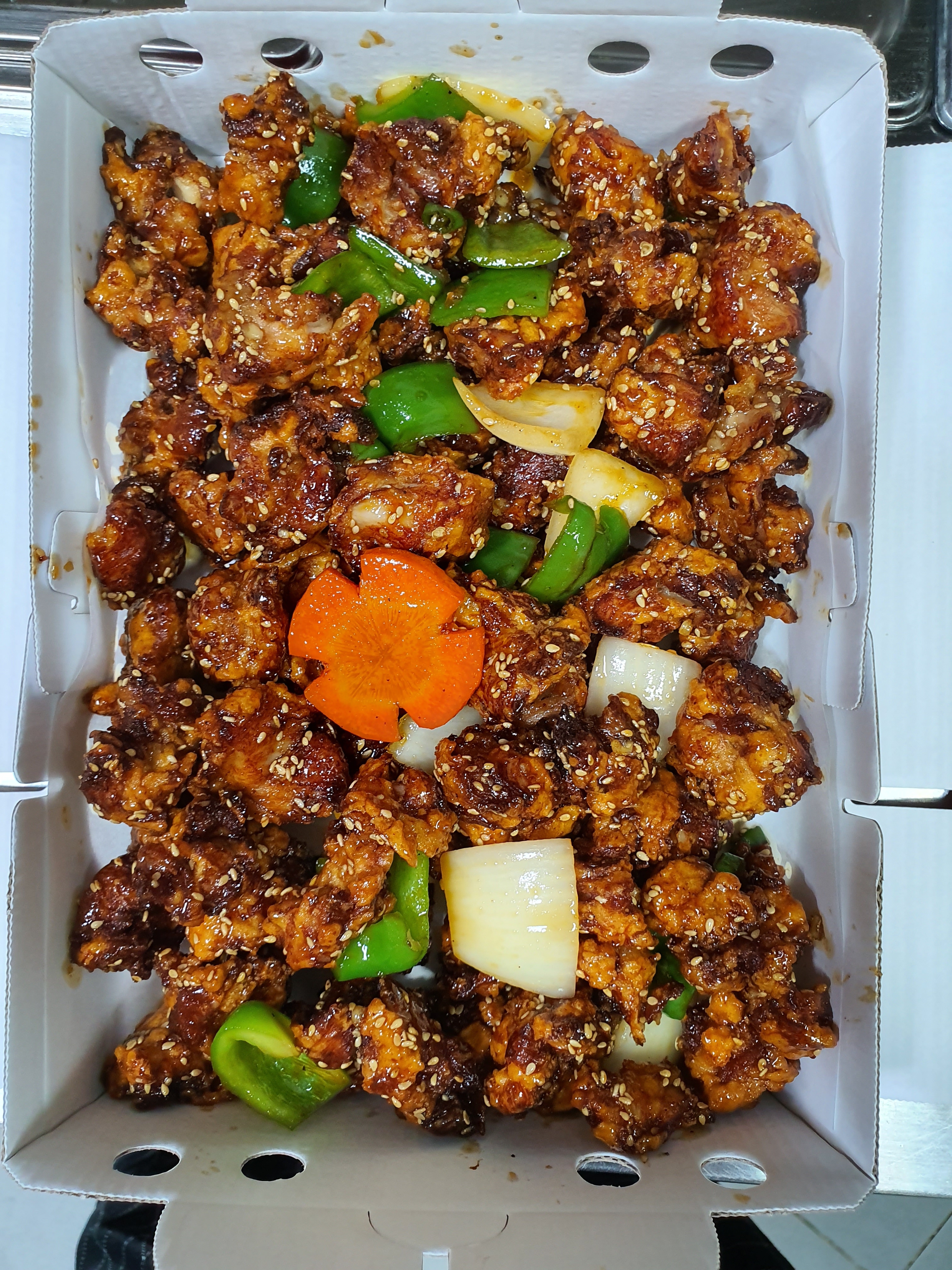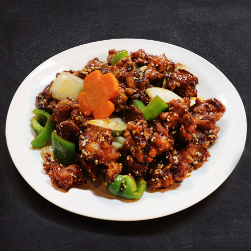 둥지쌤아들이 친정 갈때마다 사오라는 마포깐풍기 너무 맛있어요 식어도 맛나요 👍 피망 양파랑 같이 먹으면 맛있어요~