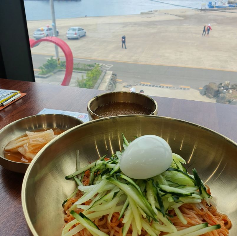 Jennie mom우도에 도착하자마자 렌터카 열심히 타구 바로 밥 먹으러 왔어요!! 고기국수랑 비빔밀냉면 그리고 산방수육 주문했는데 강추 조합이에요 면도 잘 삶아서 쫄깃하고 수육이랑 조합도 좋아요 ㅎㅎ 사장님 엄청 친절하시고 에어컨도 빵빵하니 좋아요! 만두온면 드시는 분들도 많았으니 만두 좋아하시는 분들은 참고해주세요