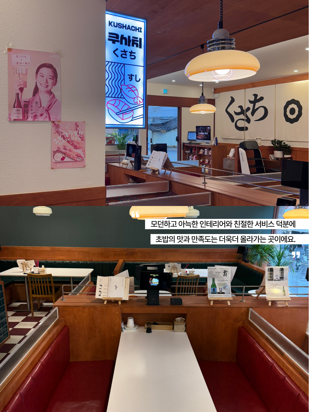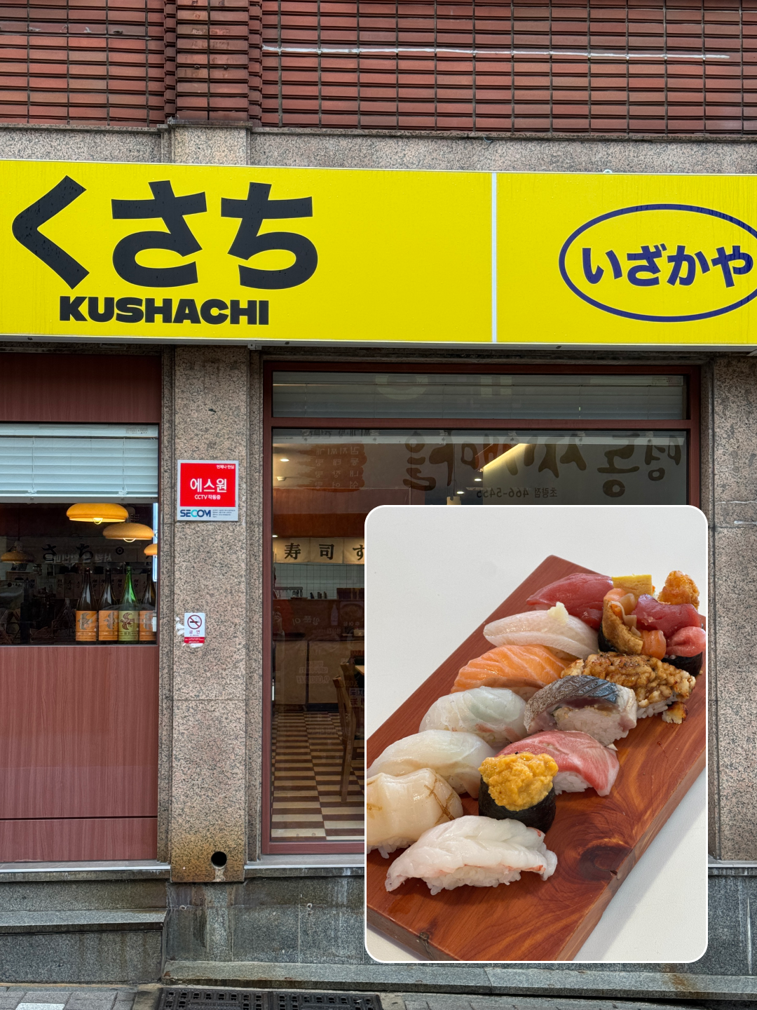 길위의 밥상초량에 있는 스시집 쿠사치를 다녀왔습니다. 부산역과 가까워 접근성이 좋고, 매장 분위기도 깔끔하고 여유로워 식사하기 편했습니다. 이날은 쉐프의 초밥과 어묵우동, 왕새우튀김이 함께 나오는 세트를 주문했는데, 가격 대비 구성이 정말 알차게 느껴졌습니다. 초밥은 광어, 참돔, 연어, 방어, 참다랑어, 홍새우, 고등어 봉초밥, 안키모, 아나고, 후토마끼, 타마고야끼까지 다양하게 구성되어 있어 한 점씩 순서대로 맛보는 재미가 있었습니다. 특히 참다랑어 뱃살과 안키모는 인상적이었고, 전체적으로 재료의 신선함과 밸런스가 좋았습니다. 차완무시와 샐러드도 함께 나와 식사 흐름이 좋았고, 우동은 국물이 깔끔하고 면발이 탱탱했습니다. 왕새우튀김도 겉은 바삭하고 속은 촉촉해 만족스러웠습니다.
