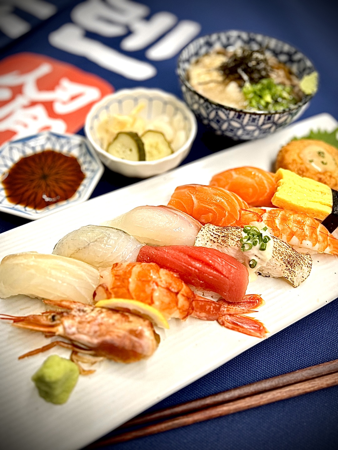 hjv지정타맛집 노렌인에서 저녁 특선 A,B 먹었어요. 양도 많고 B는 더 특별한 초밥이 나왔어요. 타코군함, 전복, 홍새우 즐기고 싶다면 B 강추에요. 이 구성에 고로케 튀김도 포함이에요. 튀김도 겉은 바삭 속은 촉촉해요. 우동도 서비스라서 진짜 혜자에요🫢 맛도 있고 매장도 청결하고 음식들도 잘 나와서 과천지정타초밥 노렌인 강추입니다~!