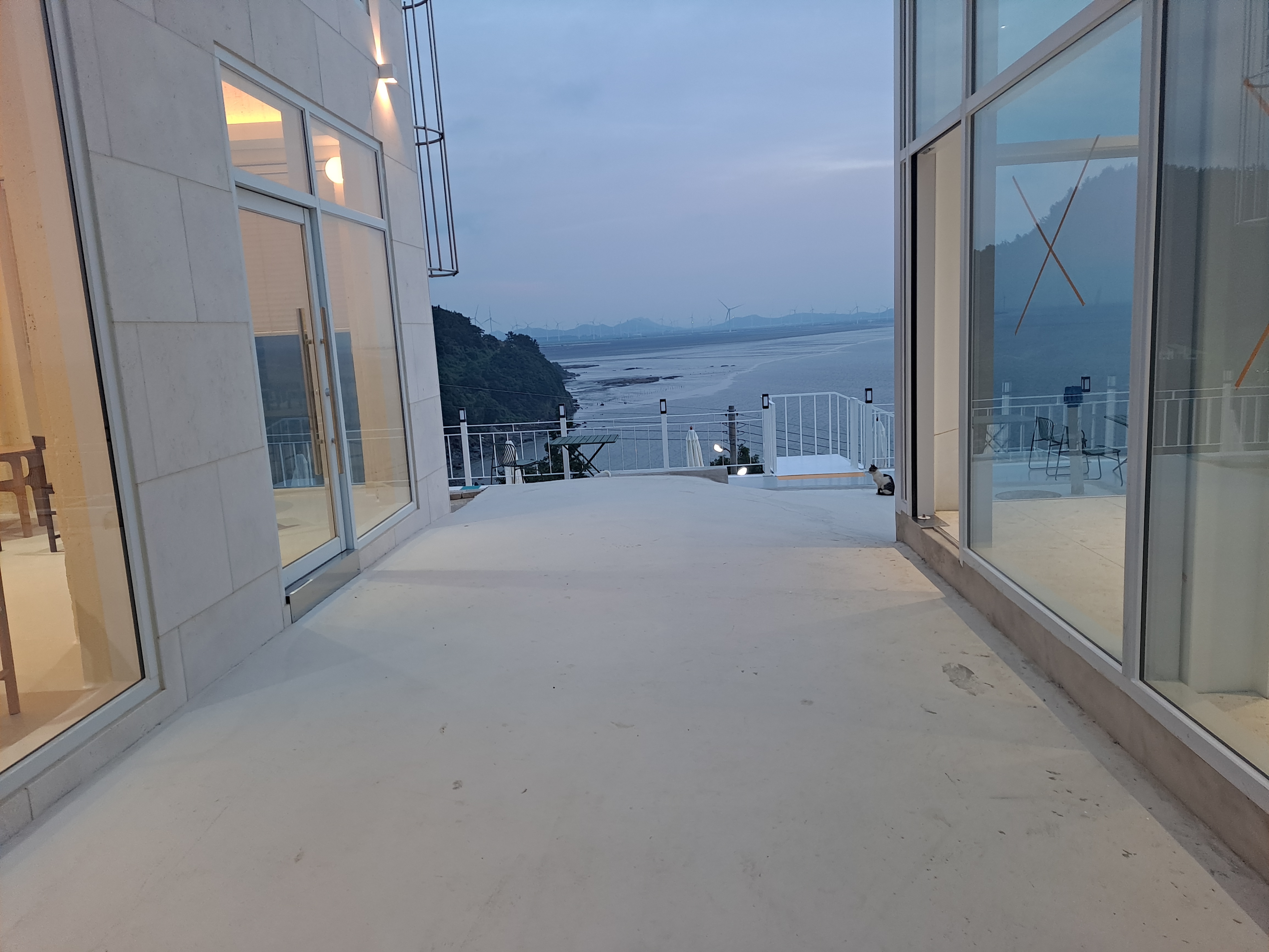 티벳사자처남과 와이프 그리고 강쥐 데리고 일몰 보러 간건데 날씨 때문에 일몰은 못보고 커피만 마시고 왔어요. 뷰는 좋아요. 커피가격은 일반 매장보다 차이가 나요. 바닷가 자리값 인가보다 했네요. ( 일반 아메리카노 5000원이라면 ... 1000~1500원 더 비싸요. 여긴 6000원 카푸치노는 6500원 하네요)