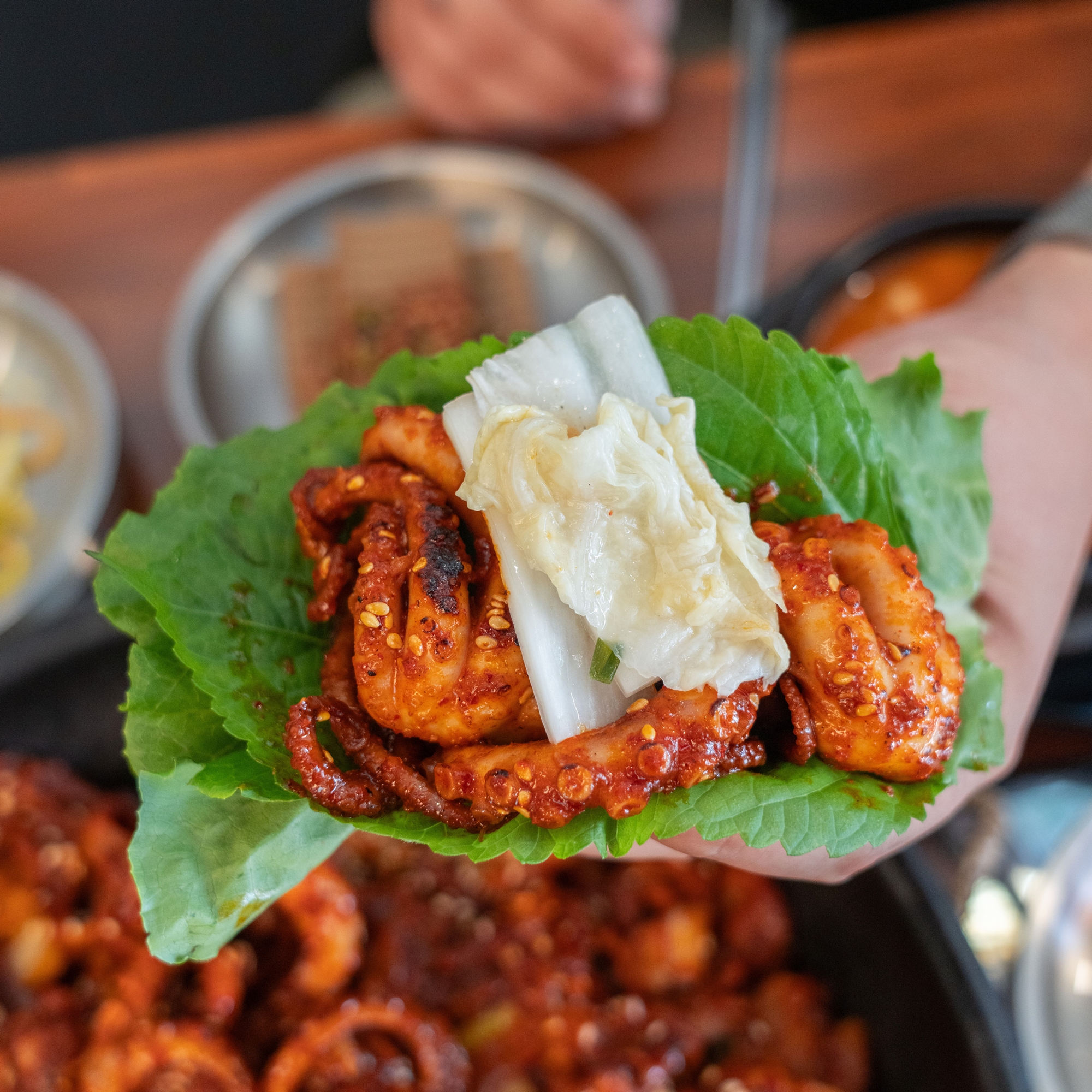 아빠는슈퍼맨96대전 둔산동 점심 맛집 돈불낙 대전둔산동직영점에서 점심특선으로 청국장이 포함된 돈불낙 정식을 먹고 왔습니다. 불맛 가득한 낙지&불고기 볶음과 곁들임 반찬, 구수한 청국장, 대접밥까지 풍성한 구성입니다. 상추 위에 불고기와 낙지를 올리고 마늘, 쌈장까지 곁들여 먹으니 입가에 미소가 절로 지어지더군요. 대접에 참기름 두른 콩나물, 밥 한공기, 돈불낙을 양껏 넣고 마지막에 구수한 청국장까지 넣어주니 아주 맛있는 돈불낙 비빔밥이 완성되었습니다. 포만감도 아주 좋고, 저같은 맵찔이 분들도 부담없이 먹기 좋은 맵기 정도였어요!