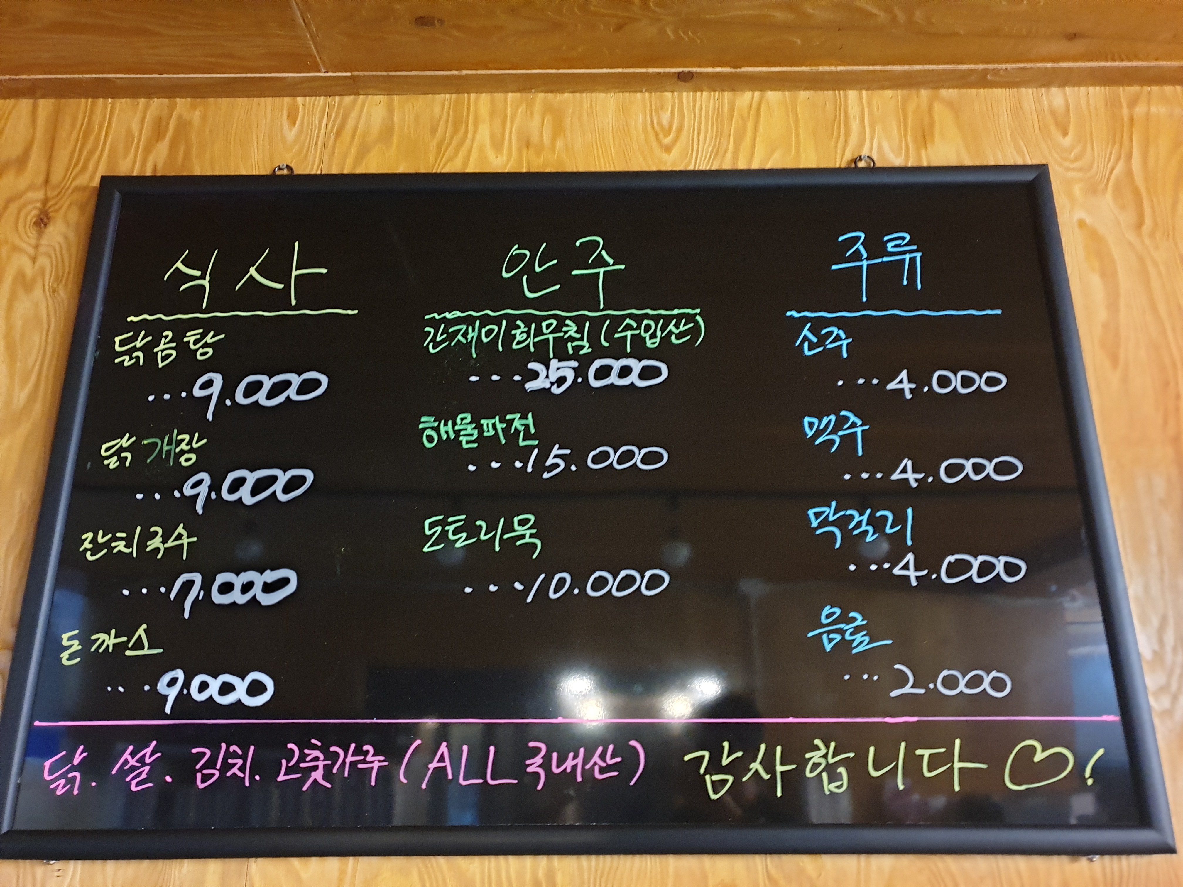 - 닭개장 9,000원