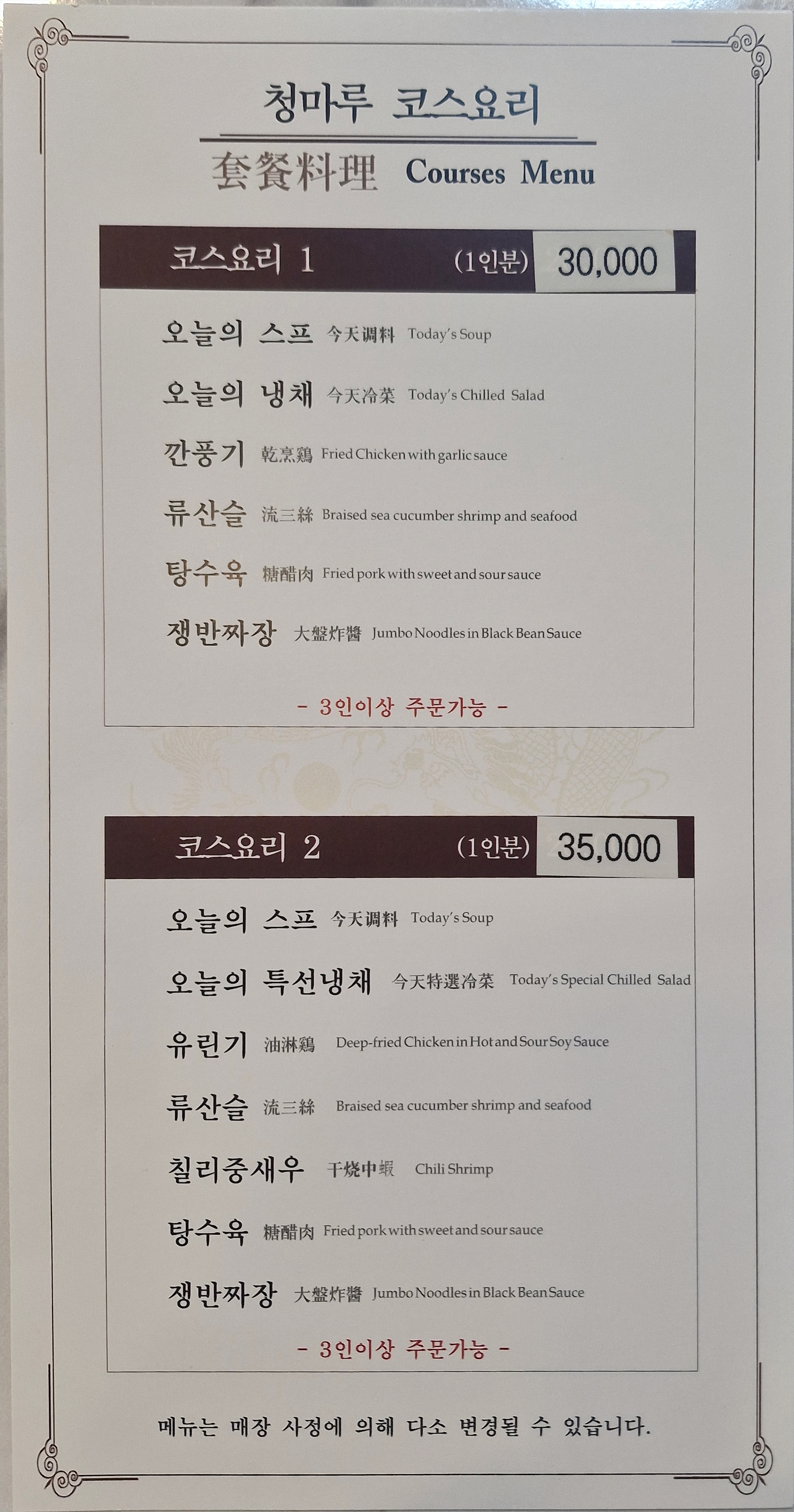 - 코스요리 30000~35000