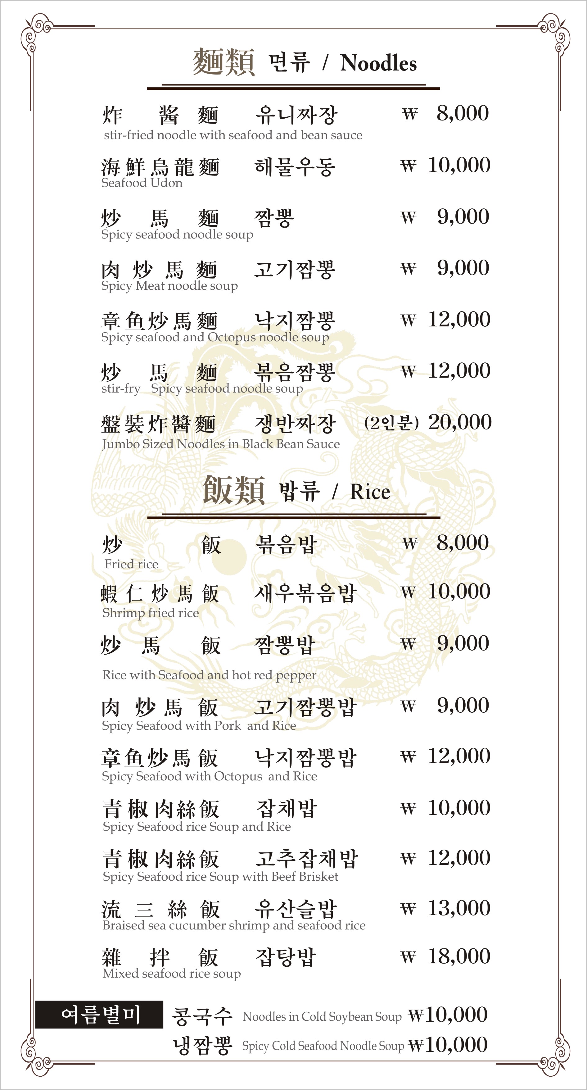 - 짬봉 10,000원