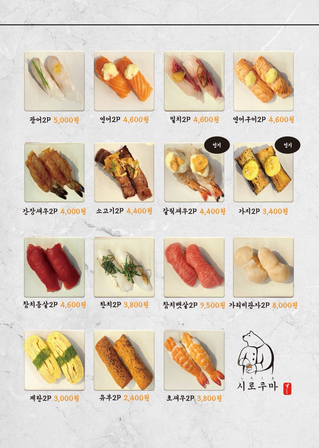 - 시로쿠마 스탠다드 초밥 8p 12,000원