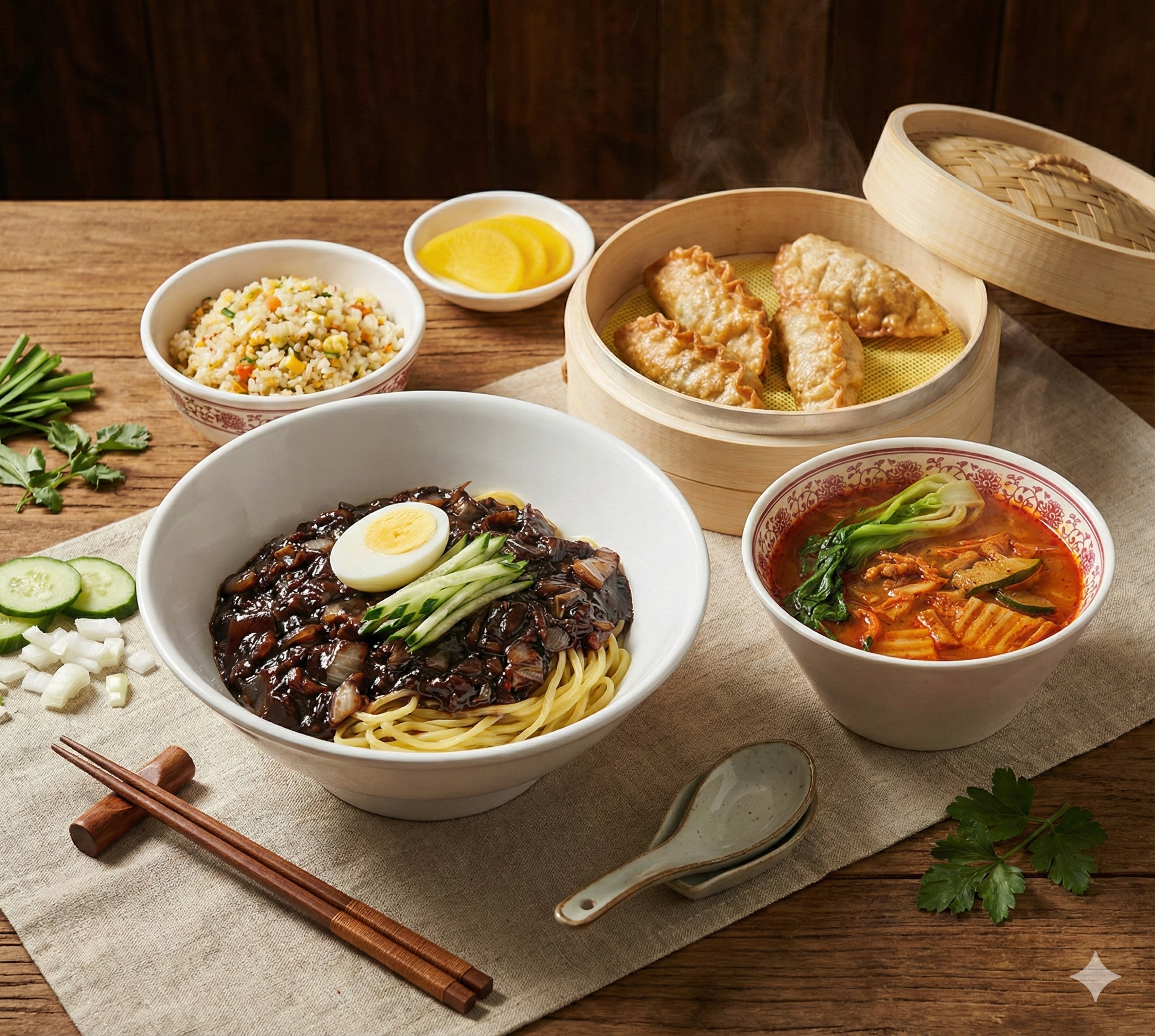 나레69큐큐면관 가산직영점 와서 혼밥했어요. 매장 깨끗하고, 사장님 친절하시고 음식도 빨리 나와요. 요즘 짜장시키면 면+소스만 주는곳이 많은데 계란에 오이까지 이쁘게 올라가있고 가격도 착해서 자주 오게 돼요. 재료 안아끼시는지 야채+고기 많이 들어있어서 소스 까지 만족스러워요bbb 앞치마도 일회용이라 위생적이고 여기 딤섬이 진짜 맛있어요. 불맛나요. 집근처였으면 자주 시켜먹었을거같아요.