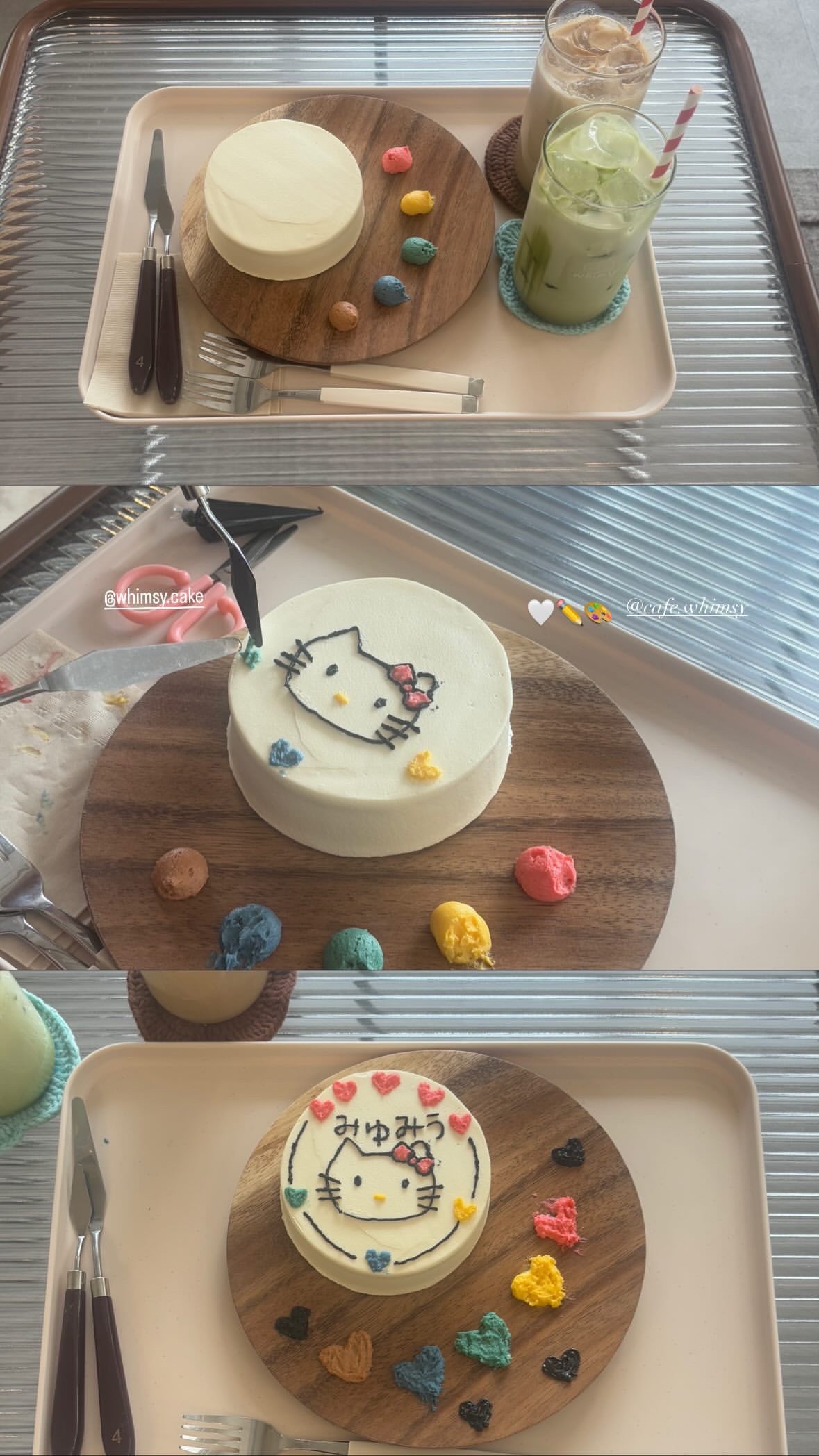 진짱안녕하세요 진짱입니다아 얼마 전에 친구의 결혼식이 있었는데요 특별한 선물을 준비해보고 싶다는 생각에 이것저것 고민하다가 결국 선택한 게 바로 케이크 만들기였어요 사실 만들면서도 너무 재밌었고 선물로 받은 친구도 진짜 즐거워해줘서 결과적으로 모두 행복했던 기억으로 남았답니다 데이트 코스로도 좋고, 기념일이나 결혼식, 생일처럼 특별한 날 선물 준비할 때도 딱인 곳이라 오늘 포스팅은 끝까지 같이 봐주세요 (^_-)≡★ 카페 윔시는 전포역에서 천천히 걸어도 부담 없는 거리라 서면 쪽에서 카페 투어하다가 들르기 딱 좋답니다 사실 씨유의 존재가 커서 그런가.. 한눈에 알아보긴 힘들었어요 ㅋㅋㅋ 하지만 귀여운 간판이 마중나와있으니 고대로 2층으로 고고하면 됩니다 계단 쪽에 COME TO THE 2F :) 같은 문구들이 하나하나 붙어 있어서 올라가는 길마저 귀여워요 카페 윔시 (Whimsy) ⏰ 화–일 11:00 – 20:00 (라스트오더 19:30) ❌ 정기휴무 : 매주 월요일 ☎️ 0507-1416-5312 부산 부산진구 전포대로255번길 8 2층 (부전역 2번 출구 도보 약 6분 / 전포·서면 도보 이동 가능) 케이크 만들기 체험 · 커스텀 케이크 반려동물 동반 가능 무선 인터넷 가능 사실 내부 사진은 못 찍었어요 ㅠㅠ 만석이었구 다들 케이크 만들기에 완전 집중 중이라 괜히 방해될까 봐 조심조심.. 근데 사진 없어도 분위기는 말할 수 있음! 따뜻하고 아늑한 카페 분위기라서 조용히 뭔가 만들어도 괜찮은 공간이었습니다 메뉴판 사진 출처 : 네이버 플레이스 저희가 주문한 나만의 케이크(12,000원)는 케이크 + 크림 + 도구까지 전부 포함되어 있어서 따로 고민할 게 없었고 가격 대비 체험 만족도가 정말 높은 편이라 이색 데이트나 선물용으로 특히 추천하고 싶었어요 음료 메뉴도 달달한 에이드부터 깔끔한 커피까지 취향대로 선택 가능해서 케이크 만들면서 같이 곁들이기 딱 좋았어요 테이블 간격도 너무 붙어 있지 않아서 옆 사람 눈치 보지 않고 작업하기 좋았구 다들 자기 케이크에 집중하고 있어서 묘하게 차분한 분위기가 유지되더라구요 하얀 케이크 시트랑 알록달록 크림들이 나란히 놓여 있는 모습이 보기만 해도 벌써 귀여움 (。ᵕᴗᵕ。) 이 단계에서도 사진 남겨두길 추천해요! 백지와 작품완성 비교하기 딱 좋음 ✨ 사실 결혼하는 친구의 친구랑 같이 만들러 간거거든여? 한마디로 첫만남에 케이크 만들러 왔음 헤헤 부산 처음 온 친구라!(=일본 사람) 제가(=서울 사람) 여행 가이드 역할 겸(?) 넘넘 즐거웠던 추억이 되었어융...