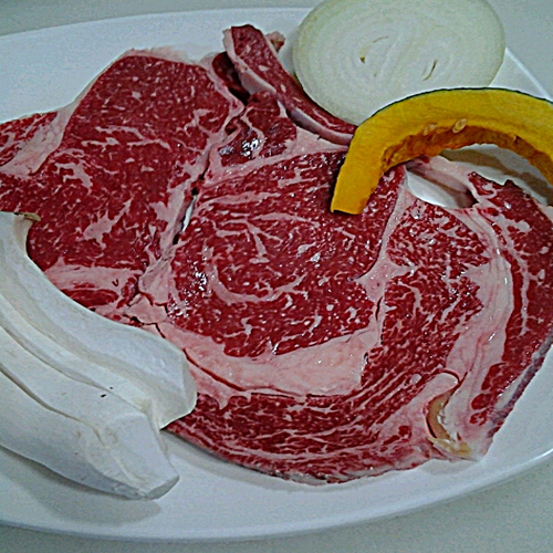 hus****사진 보시면 아시겠지만 마블링이 예술입니다. 고기 선도가 정말 좋고, 구웠을 때 육즙이 가득해서 소금만 살짝 찍어 먹어도 풍미가 대단하더라고요. 함께 나온 양파, 단호박, 버섯을 같이 구워 먹으니 조합이 딱 좋았습니다.